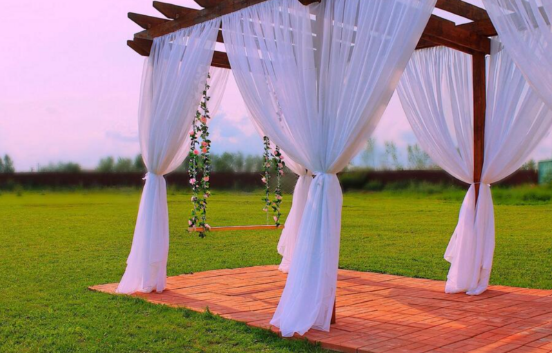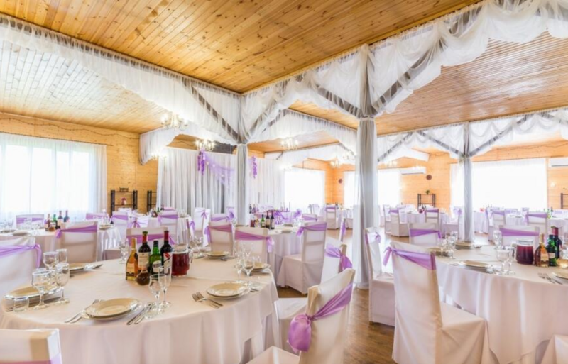 - при заказе банкета на сумму от 120000 ₽ сутки проживания для молодоженов в подарок;