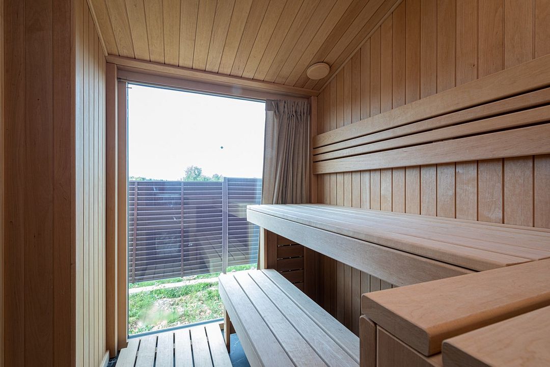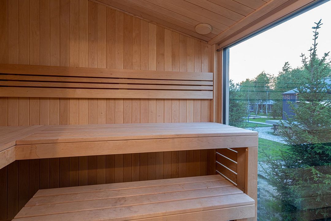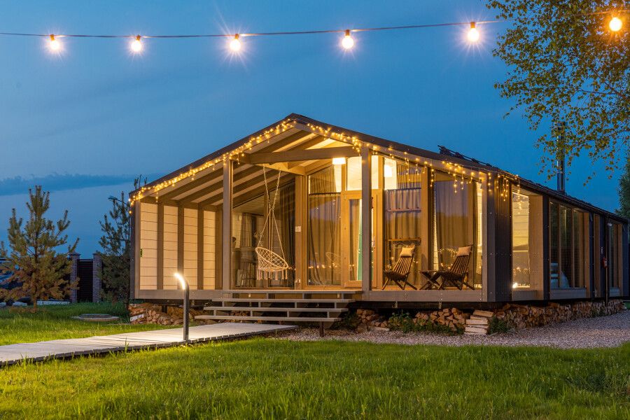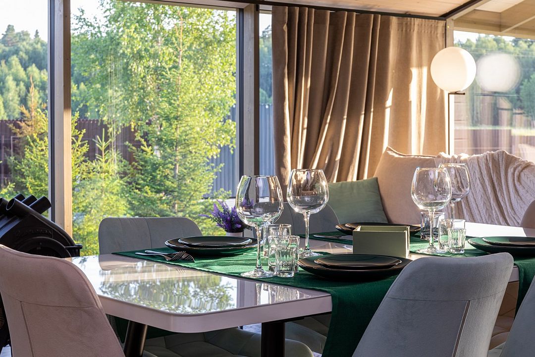 Высокие потолки, окна в пол и приподнятый, для панорамного вида, фундамент — все это позволит вам получить незабываемое ощущение объема и пространства. Это ощущение усилит самая большая сауна со стеклянной стеной и видом на подсвечиваемую купель.