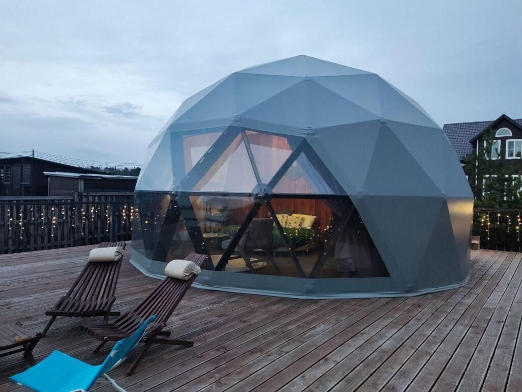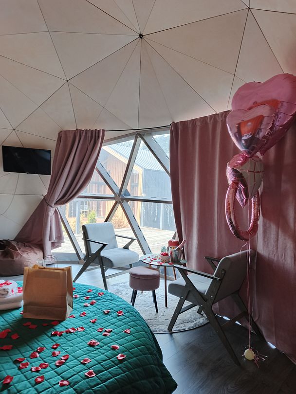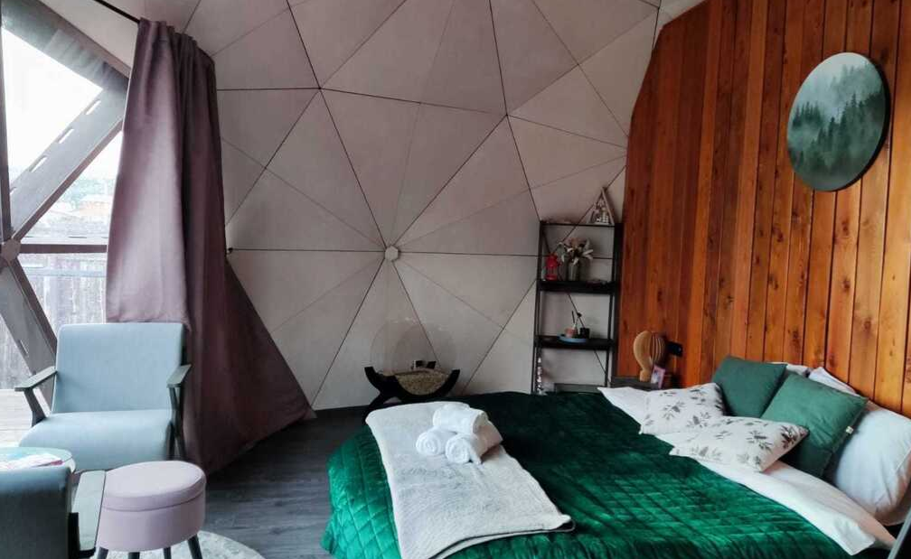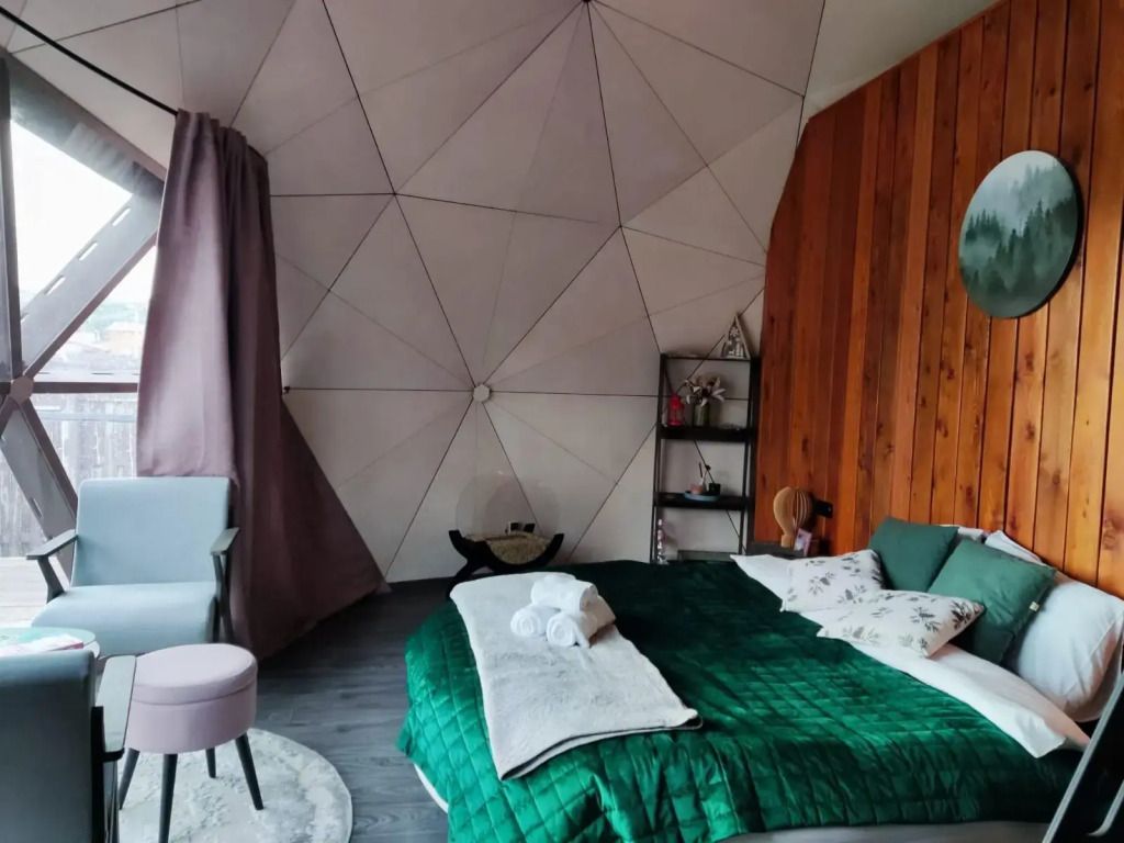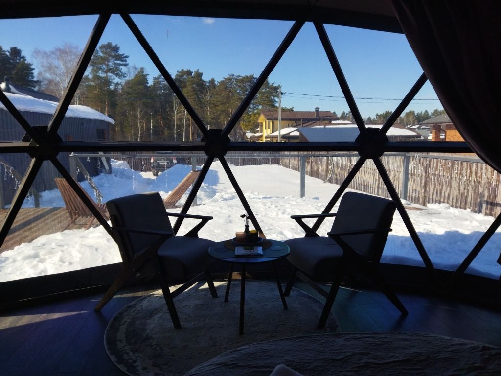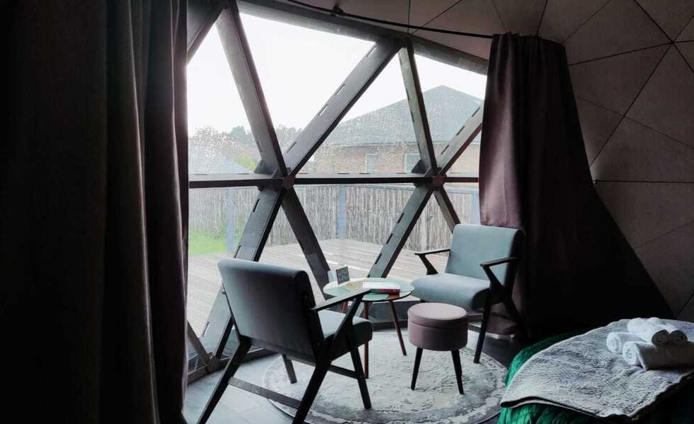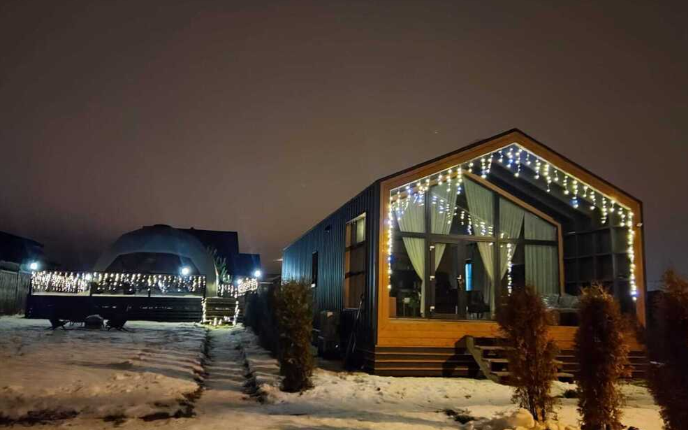 Для проживания доступен Геокупол и Барнхаус, которые находятся на участке в 9 соток. В домах предусмотрены все необходимые для комфортного проживания удобства, а стильный современный интерьер добавит уюта и атмосферы.