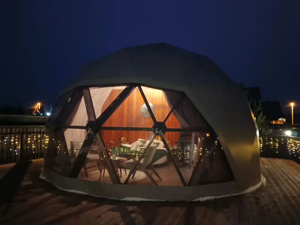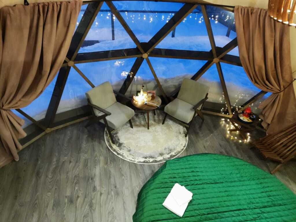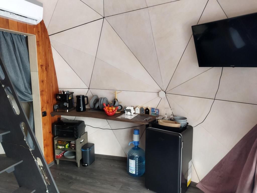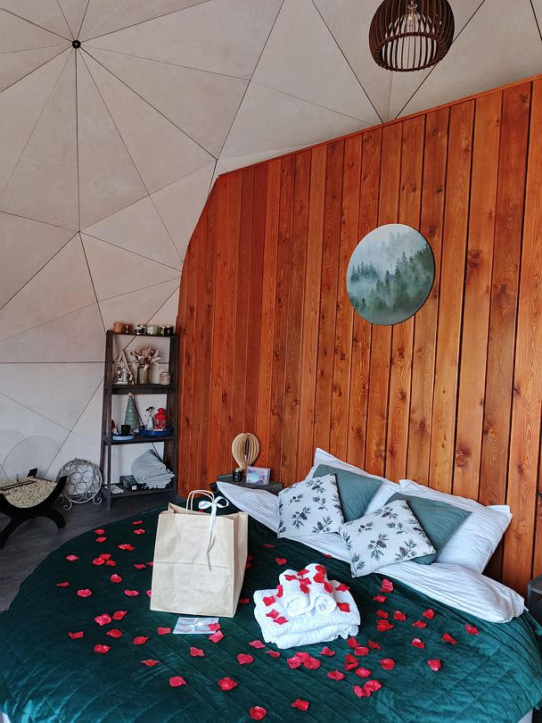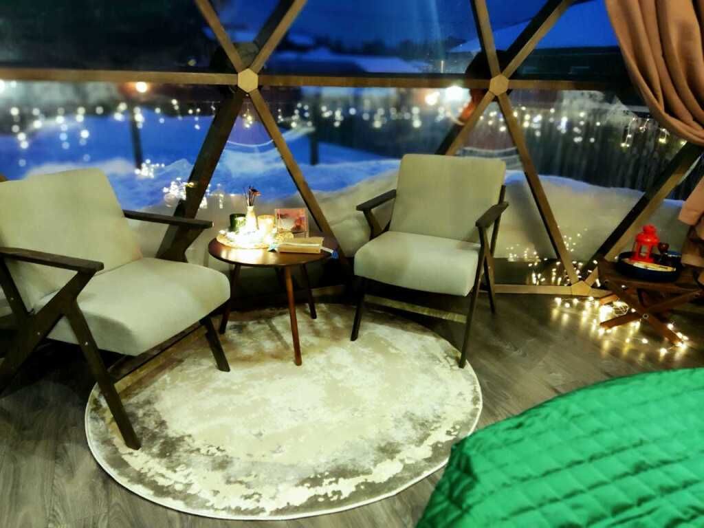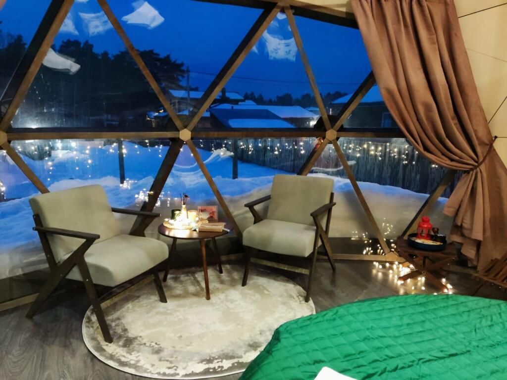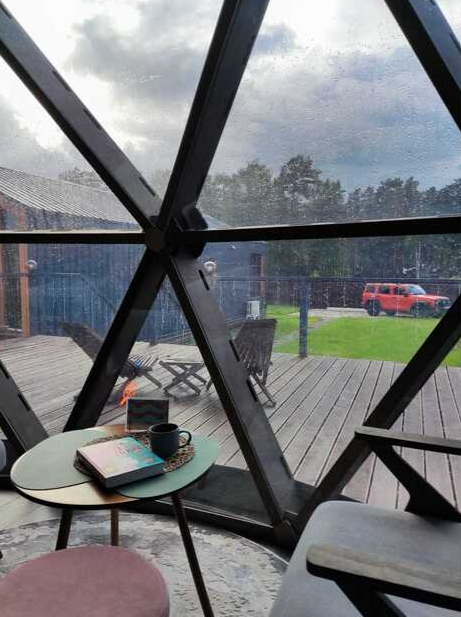 Для проживания доступен Геокупол и Барнхаус, которые находятся на участке в 9 соток. В домах предусмотрены все необходимые для комфортного проживания удобства, а стильный современный интерьер добавит уюта и атмосферы.