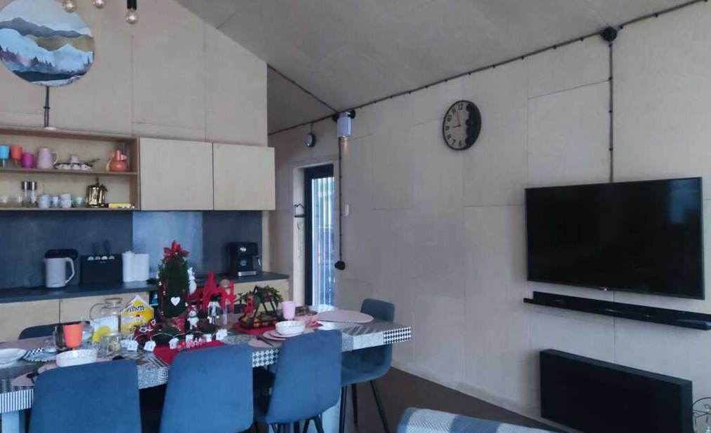В домике есть все необходимое для идеального отдыха. Есть скоростной интернет Wi-Fi, телевизор со смарт ТВ, небольшой холодильник, духовка, чайник, кофе машина, биокамин, фен с ионизацией. Мангал и костровая чаша с 4 креслами вокруг на участке.