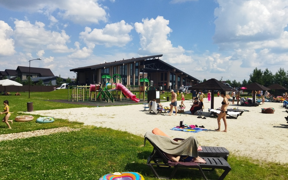 Тип пляжа: песчаныйИнфраструктура: лежаки, зонтики, шезлонгиНа территории поселка есть красивое озеро с шикарным песочным пляжем, зонты и лежаки бесплатные.