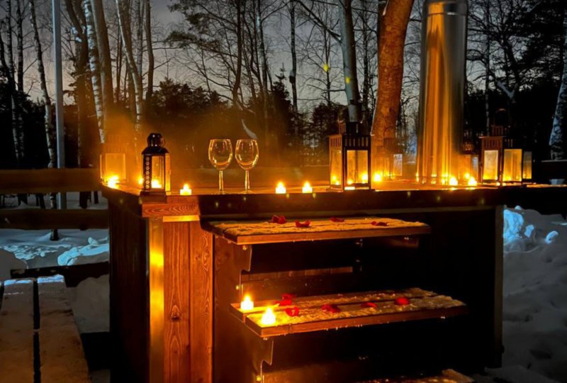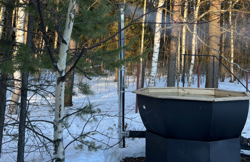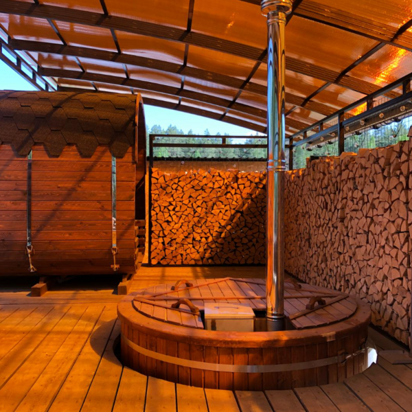 Рядом с домом есть банный чан, который мы подогреваем до 38-40 °С, чтобы вы могли расслабиться в горячей воде даже если на улице мороз! По вашему желанию мы можем добавить пихтовые и можжевеловые веники или приготовить романтическую купель!