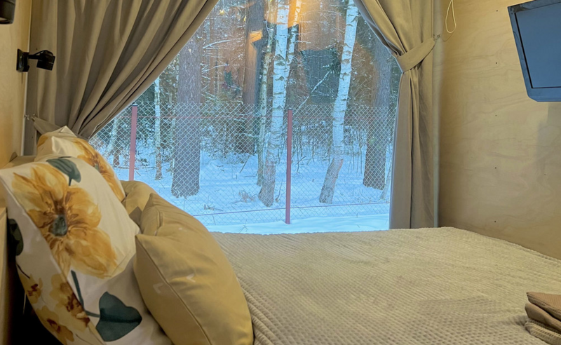 Размещение в глэмпе с комфортной двухспальной кроватью и постельным бельем с подогревом. Есть чай, чайник, обогреватель и освещение, также предоставляются полотенца.
