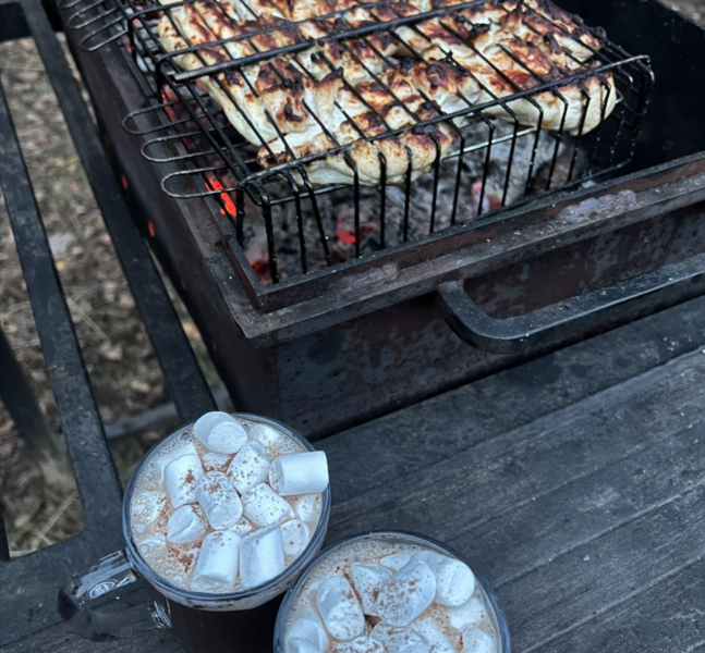 Около каждого домика и глэмпа есть мангал, на котором вы можете пожарить мясо или приготовить что-нибудь вкусное. Решетка и шампура предоставляются бесплатно.