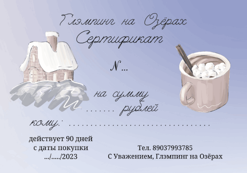Теперь вы можете приобрести подарочный сертификат на проживание и дополнительные услуги в Глэмпинге на Озёрах.