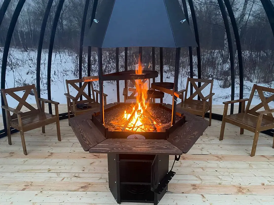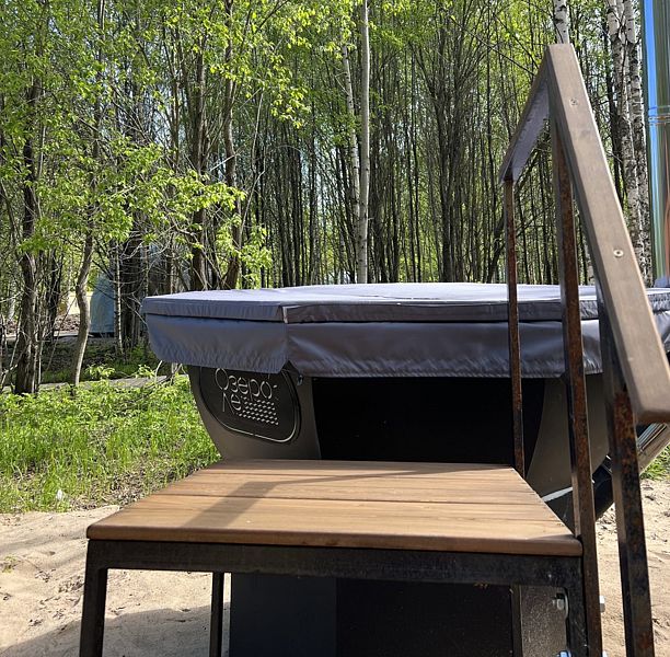 На территории глэмпинга располагаются две просторные бани с панорамными окнами, а также горячий чан-купель с ароматными травами, где можно по-настоящему расслабиться в единении с окружающим миром.
