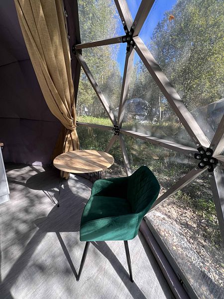 Для развлечений и связи предусмотрен бесплатный высокоскоростной Wi-Fi. А панорамные окна сферы подарят восхитительные виды на окружающий лес.