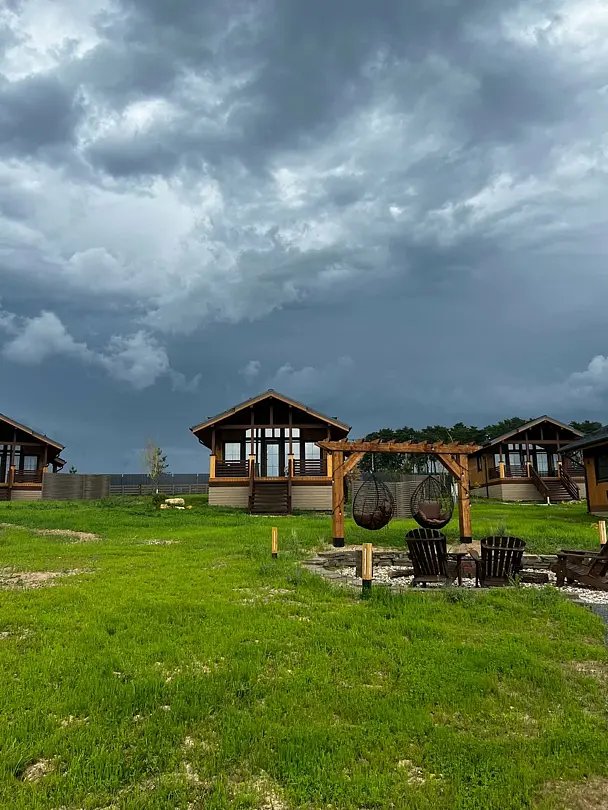 Вас ждут уютные домики, оснащённые современными удобствами, красивый вид из панорамных окон, мангальная зона, банный комплекс, контактный зоопарк. Есть охраняемая парковка.