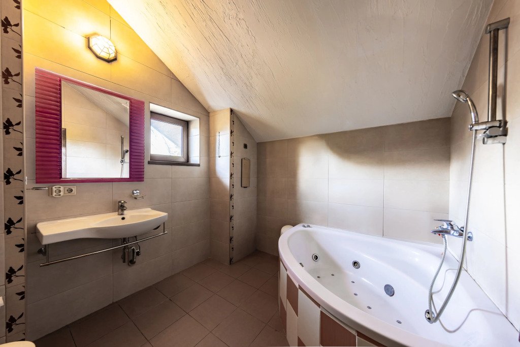 Если вы путешествуете на машине, припарковаться можно будет на парковке рядом. Также для гостей в коттедже: спа-центр. Здесь будем баловать себя водными процедурами: есть бассейн.