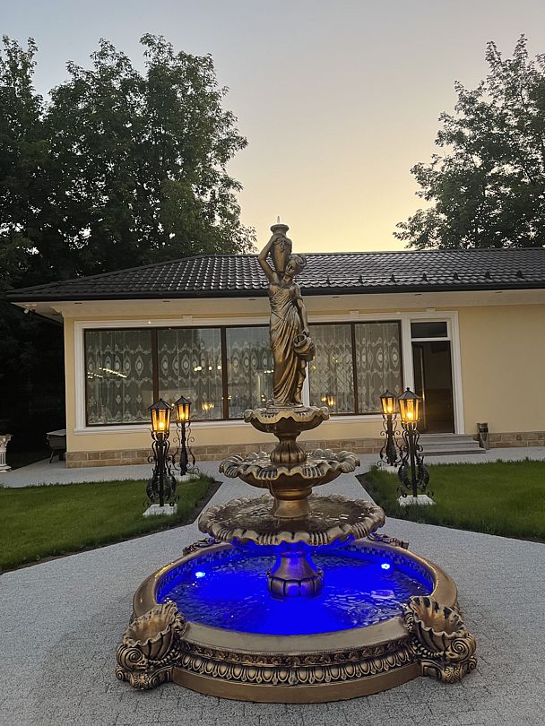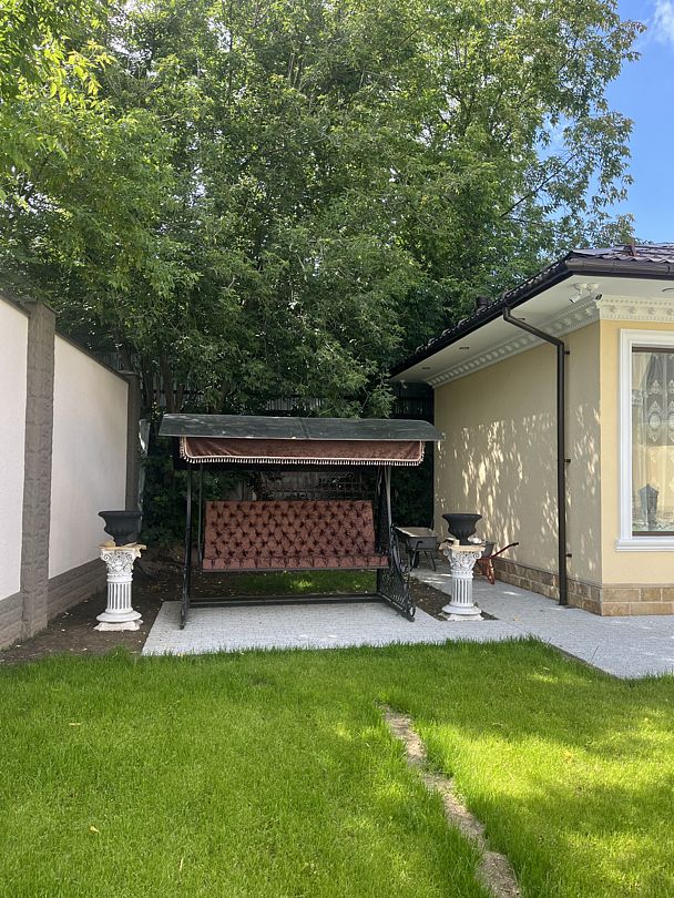 Территория виллы площадью 18 соток облагорожена ландшафтным дизайном. Имеются общественные зоны BBQ и детские площадки, охраняемый зеленый внутренний двор, бассейн, мангал, интернет wi-fi, сауна, просторная и красивая банкетная зона. Предлагается полный спектр услуг по организации праздников, украшению и wow-шоу.