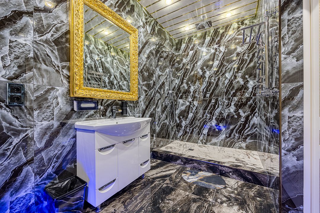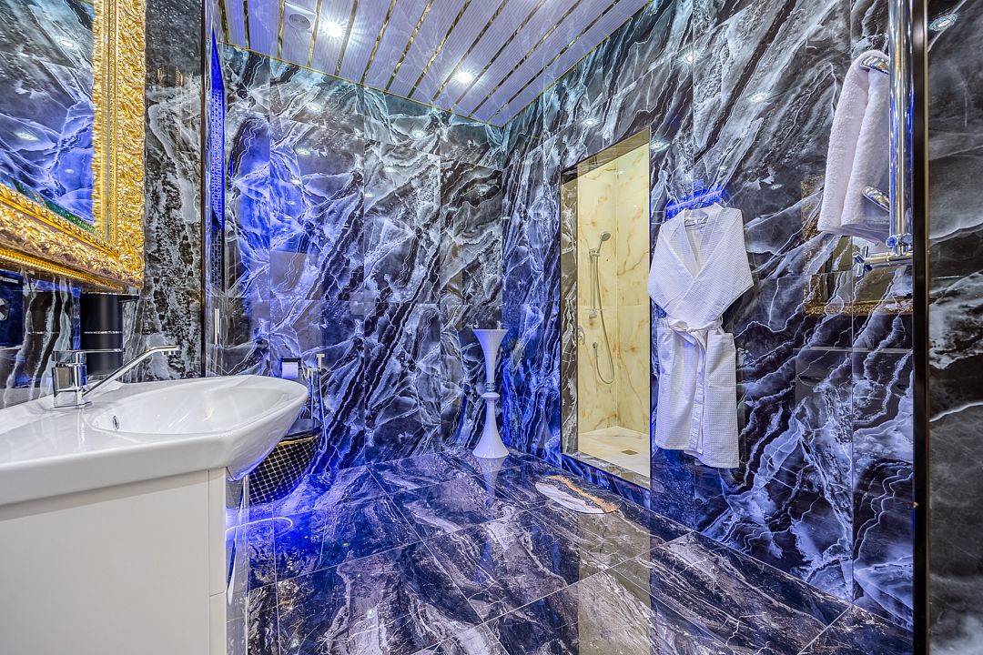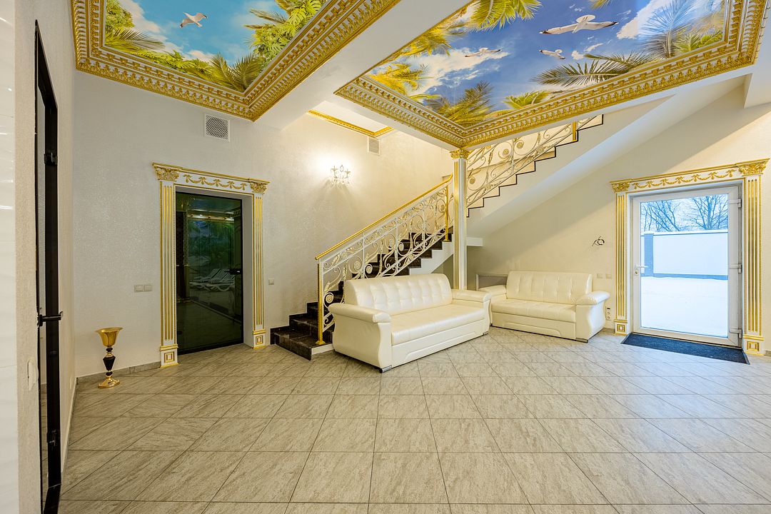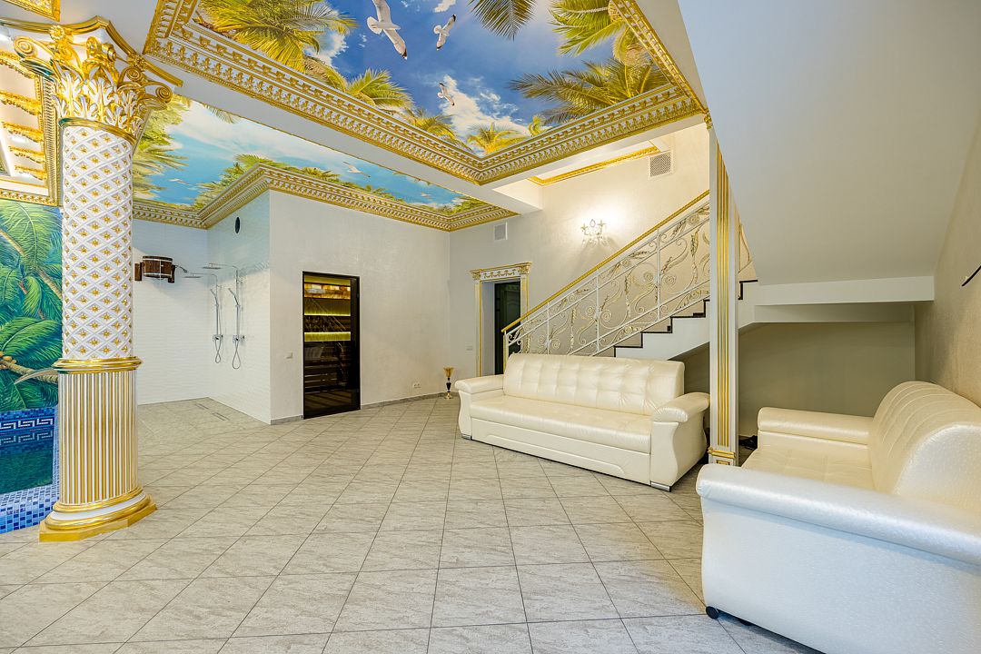 Всего 8 спален, из них 5 с кроватями king-sizе и 3 спальни с двуспальными кроватями + 2 дополнительных места и 2 детских кроватки. В каждой спальне имеется свои душ и туалет. Бассейн и сауна с гималайской солью для оздоровления и укрепления организма. Есть все, что нужно для комфортного отдыха: тапочки, халаты, полотенца, гигиенические принадлежности, чтобы вы могли чувствовать себя как дома. Большая кухня с необходимыми кухонными принадлежностями. Просторная и светлая гостиная оснащена двумя стеклянными столами ручной работы, за которыми вы сможете провести торжественный банкет. Бильярдный стол, детская игровая зона. Акустическая система караоке. Усилители, дополнительные колонки и профессиональное освещение по запросу.