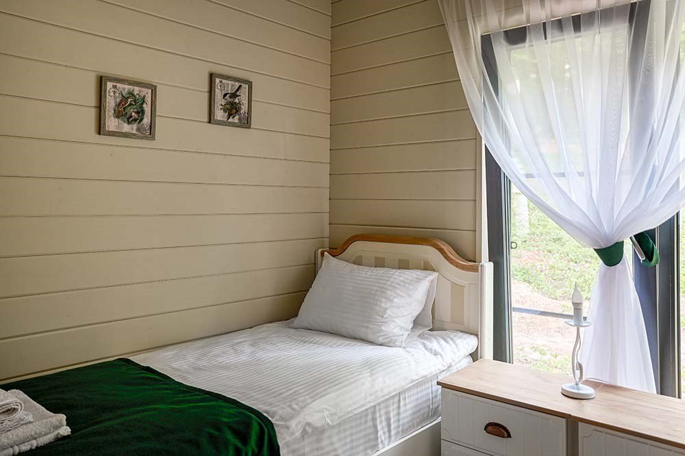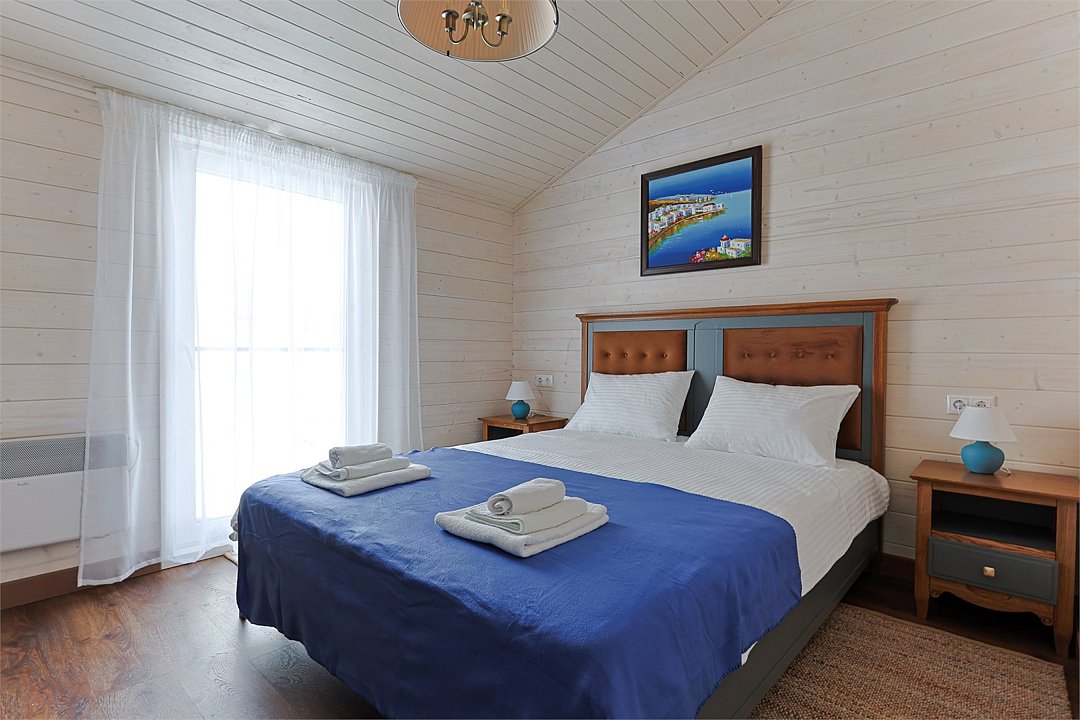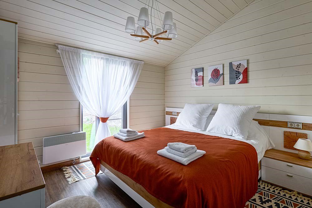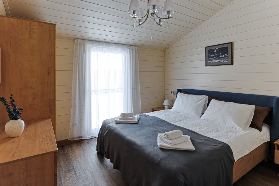 Современный дом, построен октябрь 2023, отлично подойдёт как для кратковременной аренды, так и для длительного проживания. В доме две спальни: одна спальня с двуспальной кроватью, а во второй спальне две односпальные кровати.