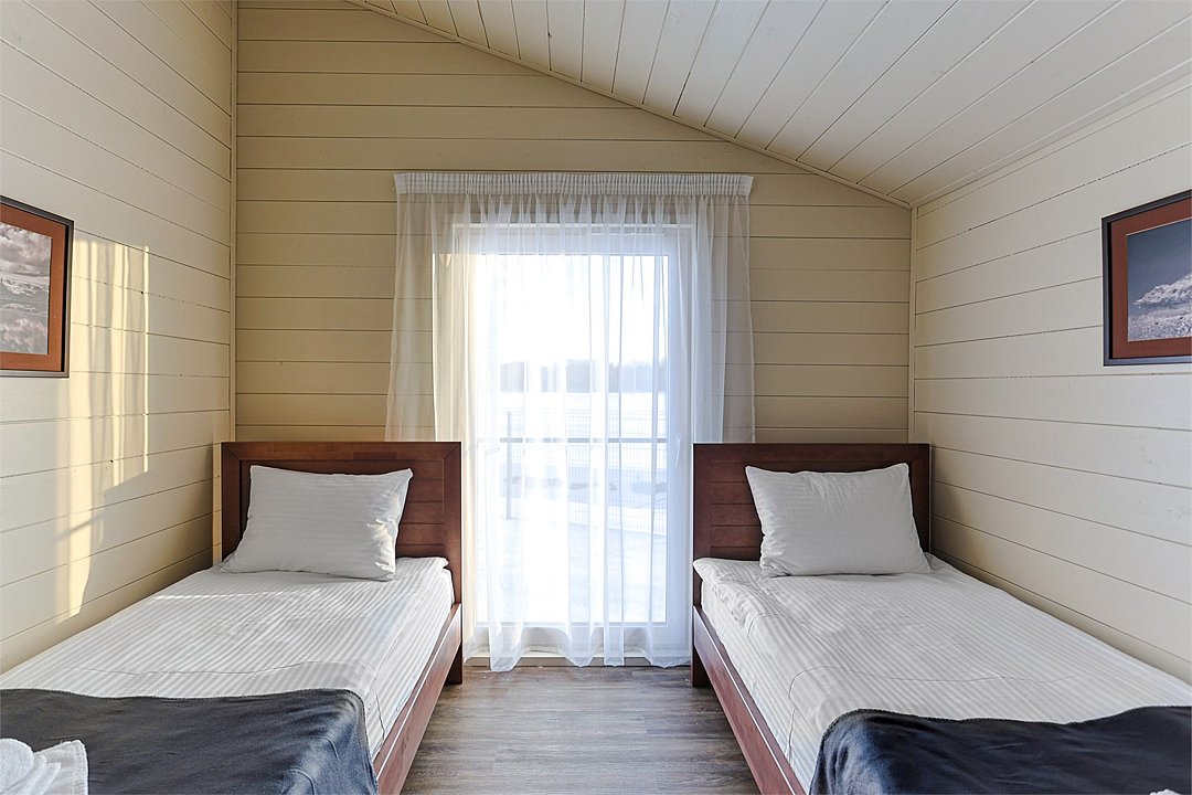 Современный дом, построен апрель 2023, отлично подойдёт как для кратковременной аренды, так и для длительного проживания. В доме две спальни: одна спальня с двуспальной кроватью, а во второй спальне две односпальные кровати.