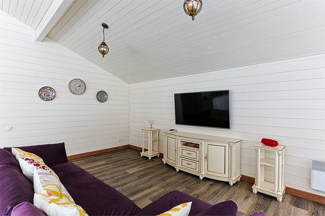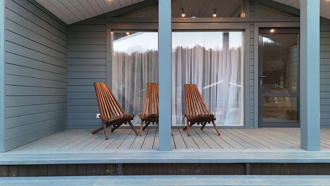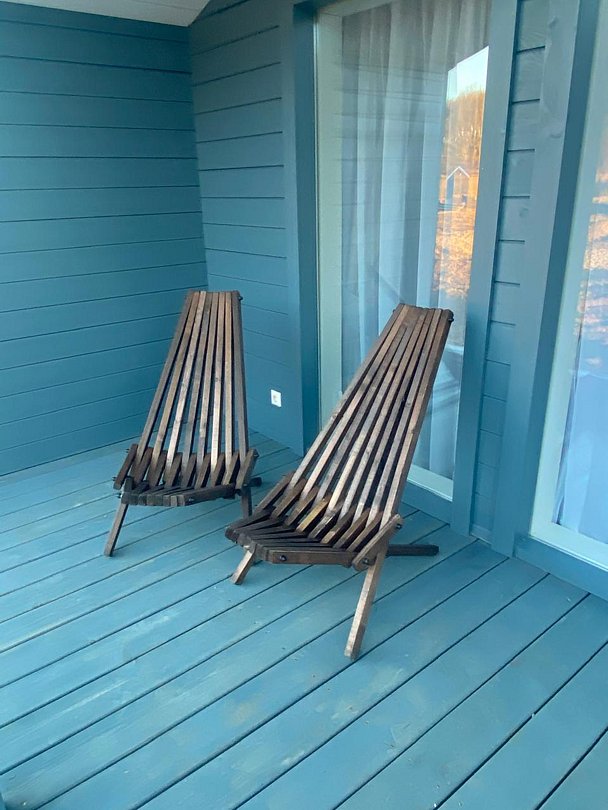 Есть терраса с мебелью, пледы. Мангальная зона у дома, где есть мангал и шампура. При проживании в этом доме можно заказать услугу — купание в банном чане.