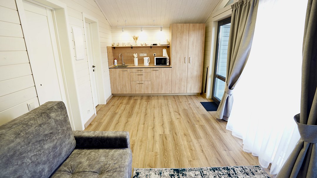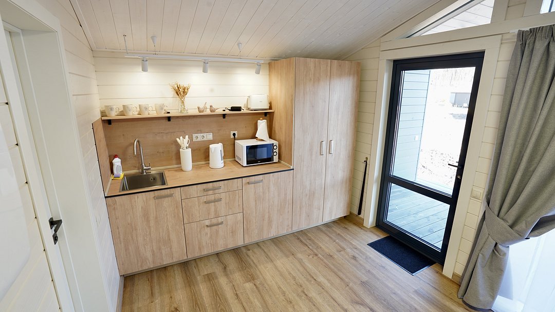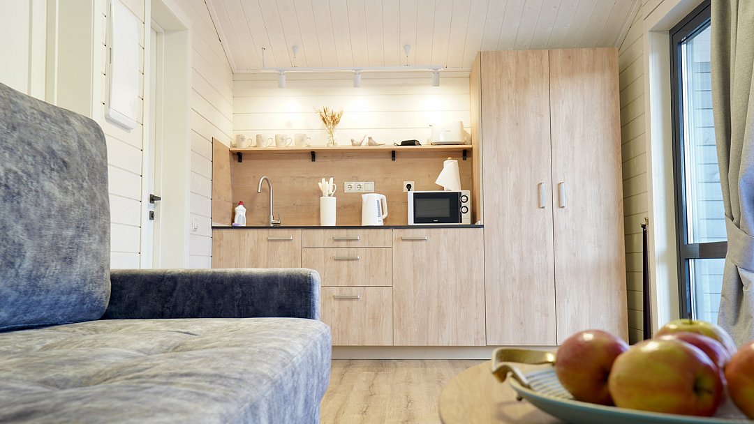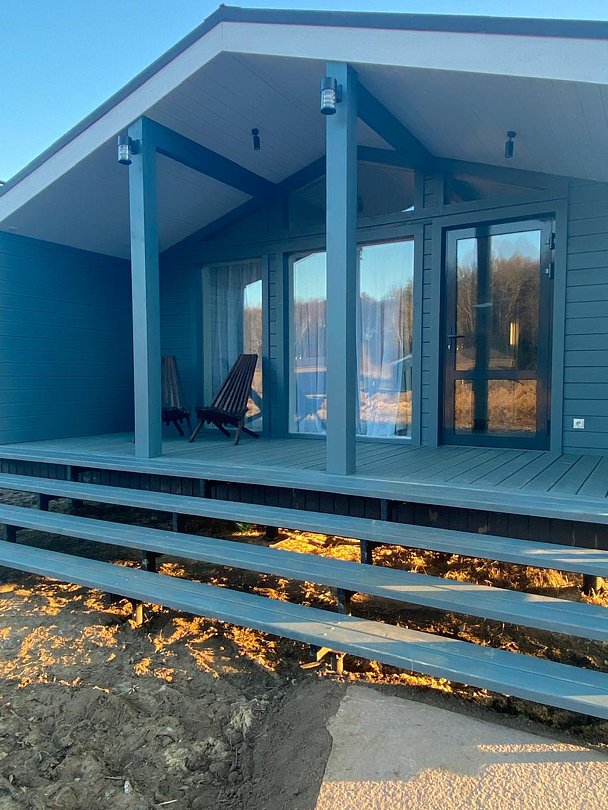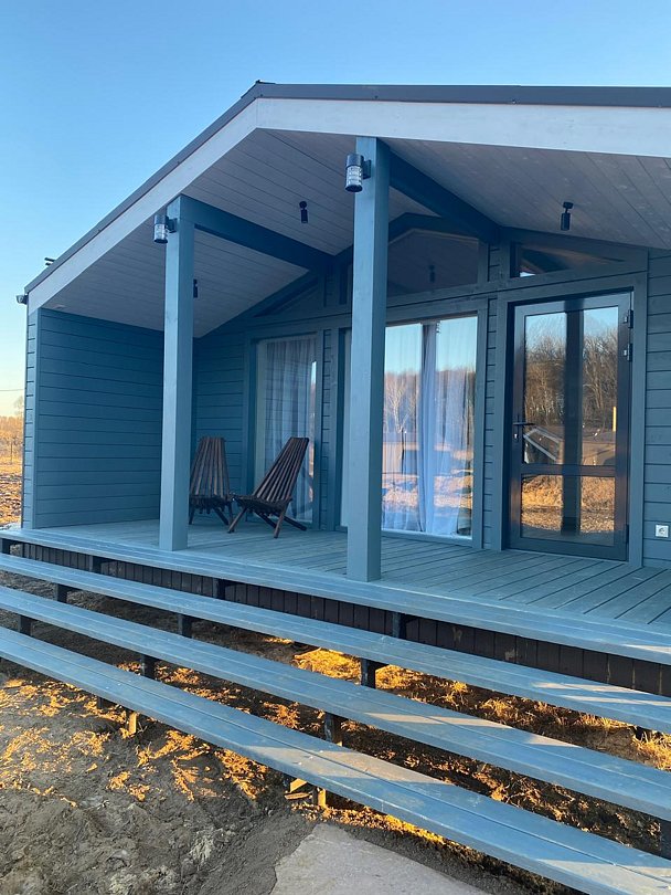 Новые , современные двух комнатные дома с верандой были построены весной 2025 года . Дома такие же теплые и уютные ,как наши большие дома . На веранде есть мебель , мангал, две комнаты ,небольшая кухня . Необходимая посуда ,столовые приборы . Есть микроволновая печь, тостер и электрический чайник . В доме спальная комната ,где можно выбрать одну большую или две односпальные кровати .В гостиной раскладной диван для одного или двух человек. В домике можно разместить от 1 до 4-х человек. Здесь нет плиты ,есть холодильник ,но не большой . Есть телевизор с плоским экраном и музыкальная колонка .