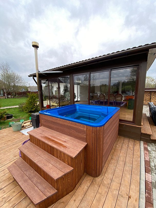СПА-купель подогреваемая с аэро- и гидромассажем, хромотерапия. Вместимость 6 человек.