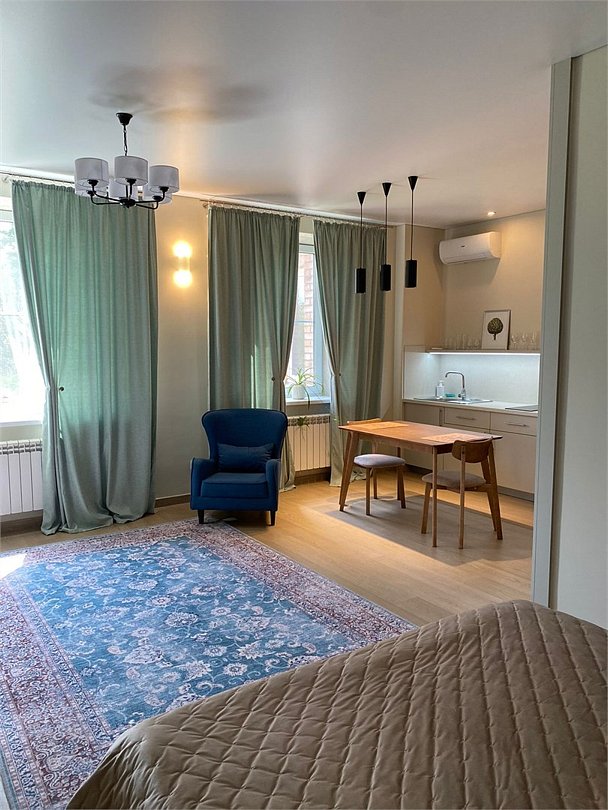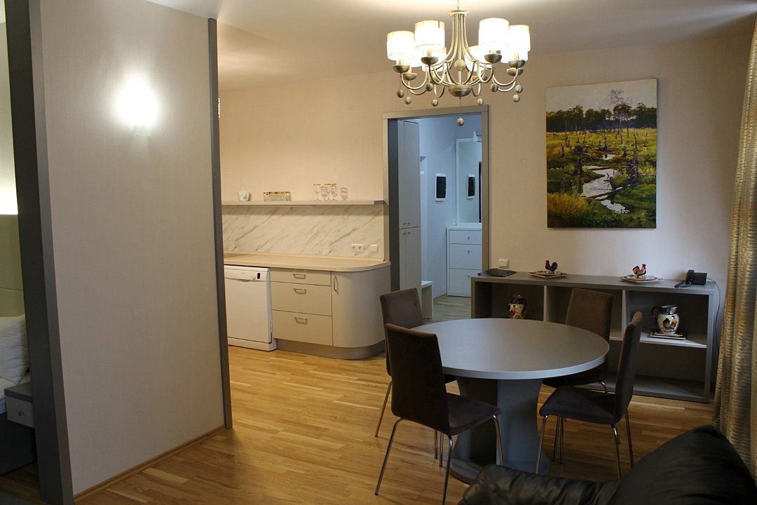 Самый просторный номер в отеле. Подходит для длительного проживания. Полностью оборудованная кухня. Есть стиральная машина. В стоимость проживания включен завтрак.Услуги и удобства