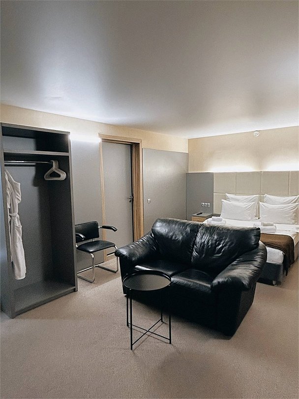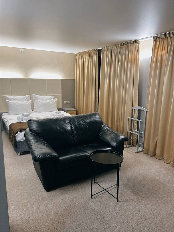 Номер категории «Бизнес» одна кровать большого размера с ортопедическим матрасом. Площадь номера 24 кв. метра , где есть место для отдельной рабочей зоны, оборудованной письменным столом и для чайного столика, где имеется электрический чайник и чайные принадлежности. Для удобства размещения в номере имеются минихолодильник, шкаф для одежды и место для багажа. Комфортный санузел оборудован душевой кабиной , а плотные шторы могут отделить рабочую часть номера от спальной. Все номера этой категории расположены на 4 и 3 этажах отеля.Услуги и удобства