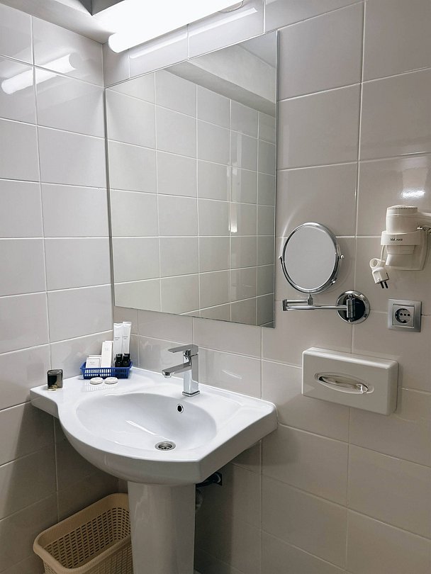 Двухместный номер с 1 кроватью(улучшенный) - Подходит для гостей с ограниченными физическими возможностями В номере широкая входная дверь, два санузла, один из которых без порогов, просторный, с заниженной раковиной. При стандартном размещении наполнение номера, как в номере повышенной комфортности( махровые халаты, тапочки, полный набор туалетных принадлежностей.Услуги и удобства