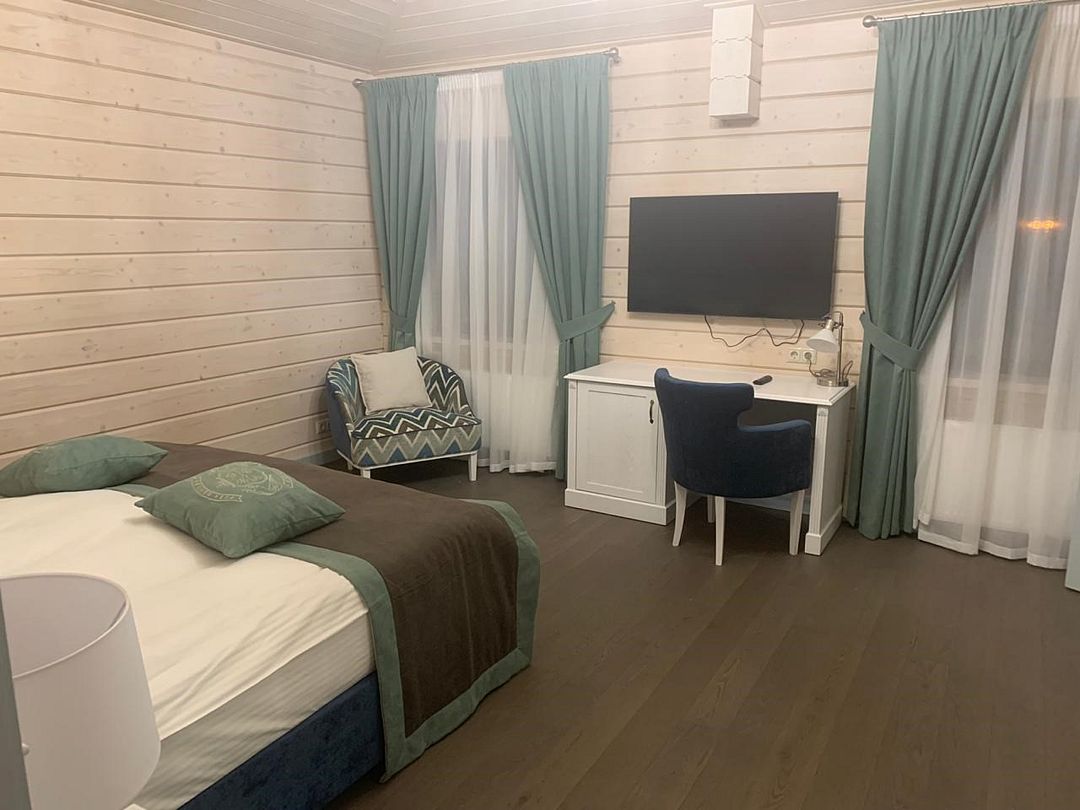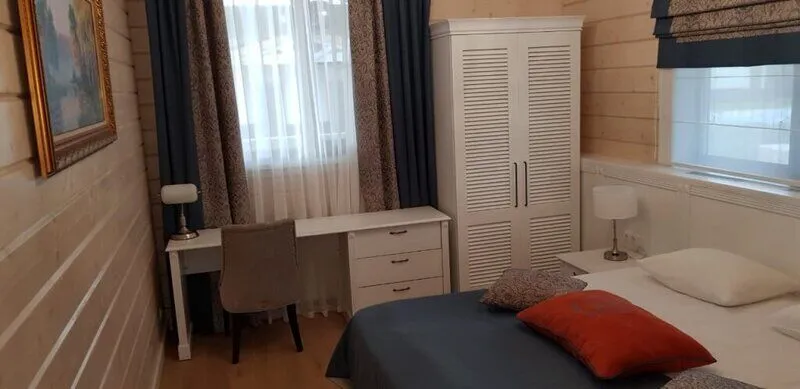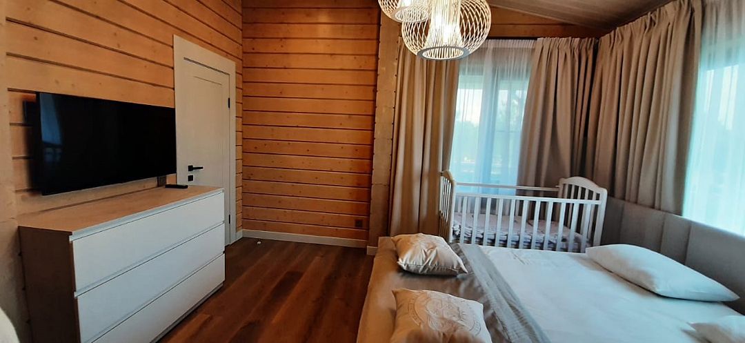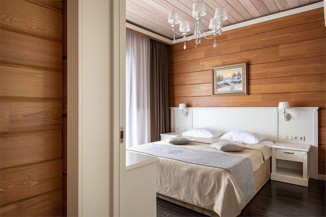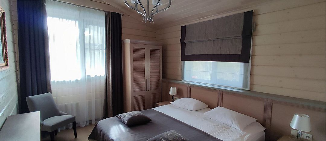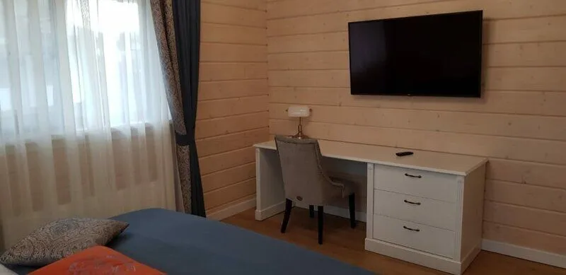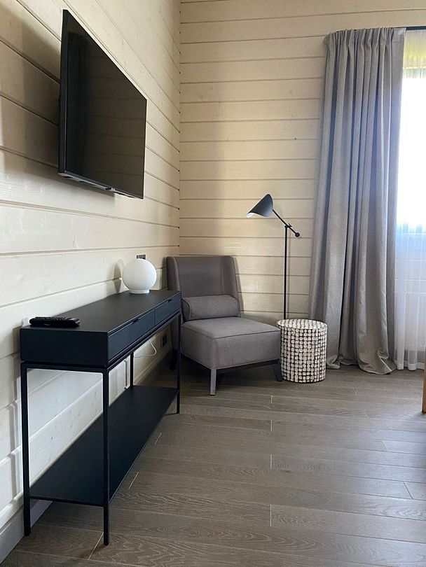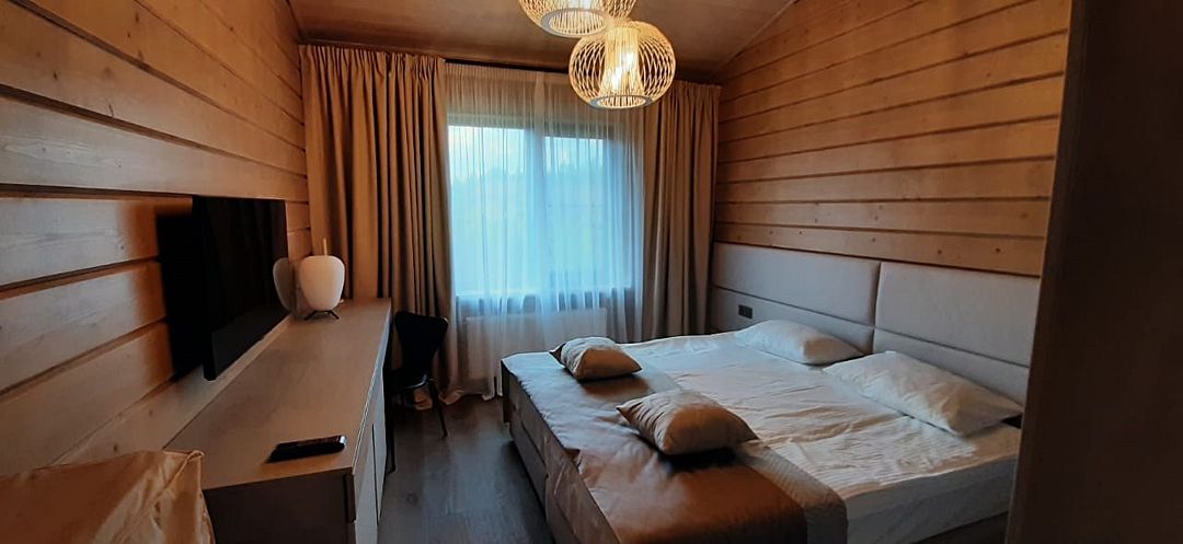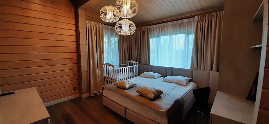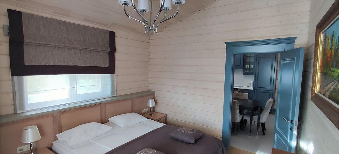 март 2022 г.Остались очень довольны выходнымиПервый опыт отдыха в Подмосковье превзошел все наши ожидания, в хорошем смысле. Сняли Шале Luxe на выходные, это половина домика - у вас свой подьезд и место для машины, отдельных вход в дом. Небольшая веранда, но у нас погода была холодная и соседей не было, а так может и смотрели бы друг на друга сидя там с соседями) В доме Очень чисто, вот это один из самых главных моментов! Обстановка не зашарпаная, все новенькое, намытое и натертое до блеска, очень приятно находиться в доме. Второй важный момент это матрас на кровати -он хороший, спали как убитые и спина не болела. Третье - это вкусная еда, мы заказывали из их ресторана - привозят быстро, все горячее и вкусное, особенно нам полюбились блинчики с творогом) поскольку был не сезон, людей почти не было и стояла тишина. То, что нам и было нужно) В сезон большая территория для детских игр - площадки, мини зоопарк и т.д. Небольшой недостаток, рядом нет магазина никакого, так что снеки и шоколадки лучше прихватить с собой.