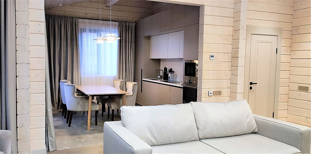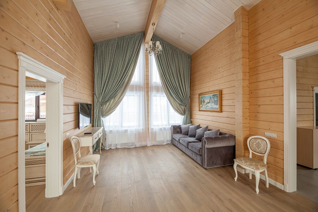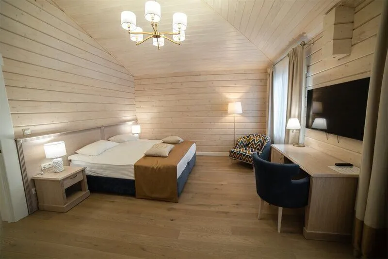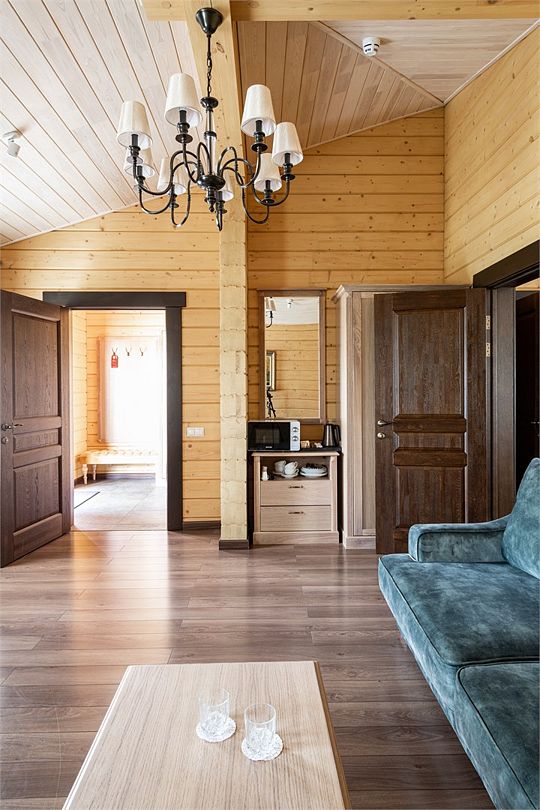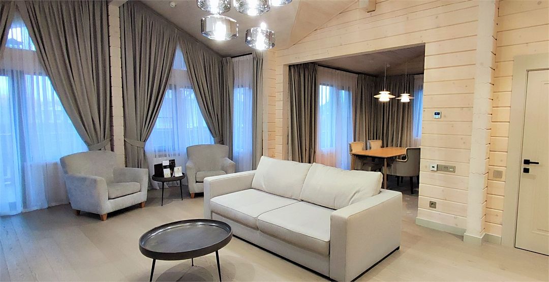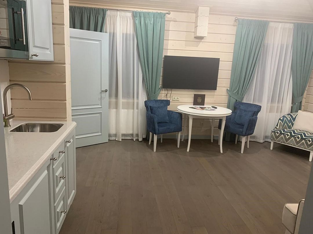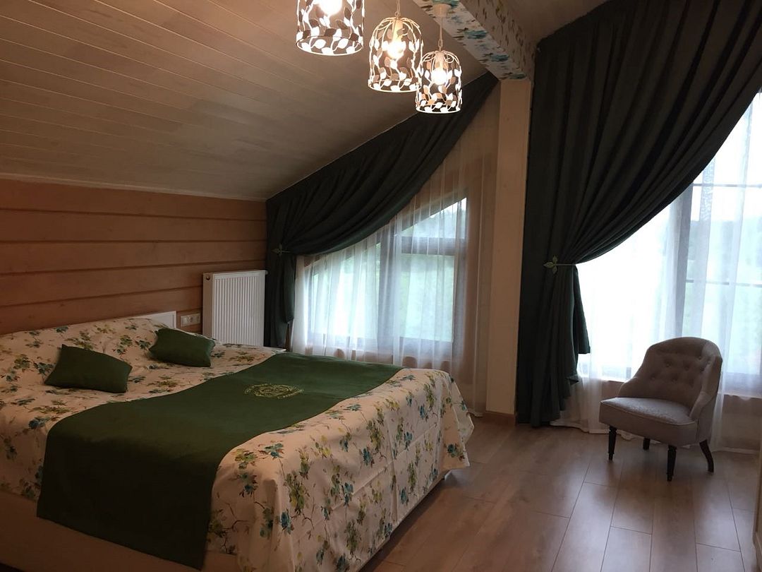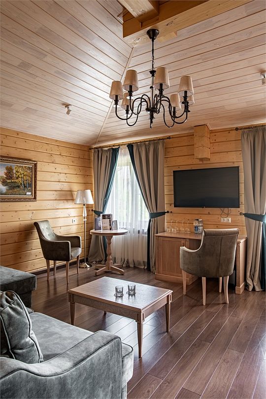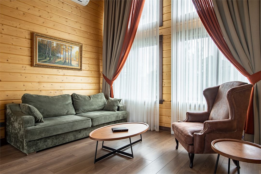 март 2022 г.Остались очень довольны выходнымиПервый опыт отдыха в Подмосковье превзошел все наши ожидания, в хорошем смысле. Сняли Шале Luxe на выходные, это половина домика - у вас свой подьезд и место для машины, отдельных вход в дом. Небольшая веранда, но у нас погода была холодная и соседей не было, а так может и смотрели бы друг на друга сидя там с соседями) В доме Очень чисто, вот это один из самых главных моментов! Обстановка не зашарпаная, все новенькое, намытое и натертое до блеска, очень приятно находиться в доме. Второй важный момент это матрас на кровати -он хороший, спали как убитые и спина не болела. Третье - это вкусная еда, мы заказывали из их ресторана - привозят быстро, все горячее и вкусное, особенно нам полюбились блинчики с творогом) поскольку был не сезон, людей почти не было и стояла тишина. То, что нам и было нужно) В сезон большая территория для детских игр - площадки, мини зоопарк и т.д. Небольшой недостаток, рядом нет магазина никакого, так что снеки и шоколадки лучше прихватить с собой.
