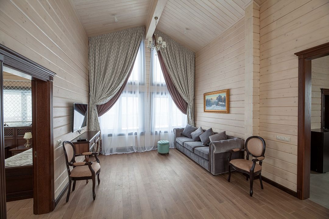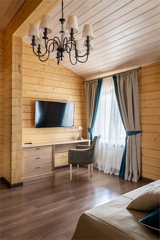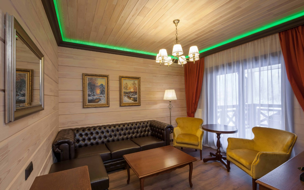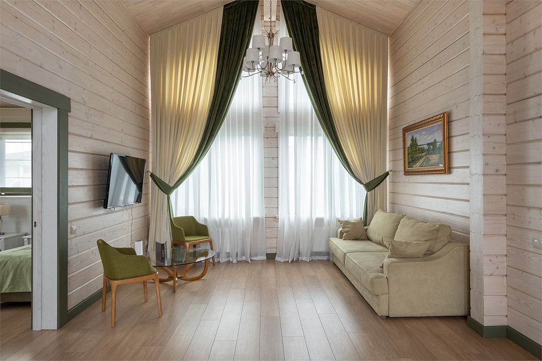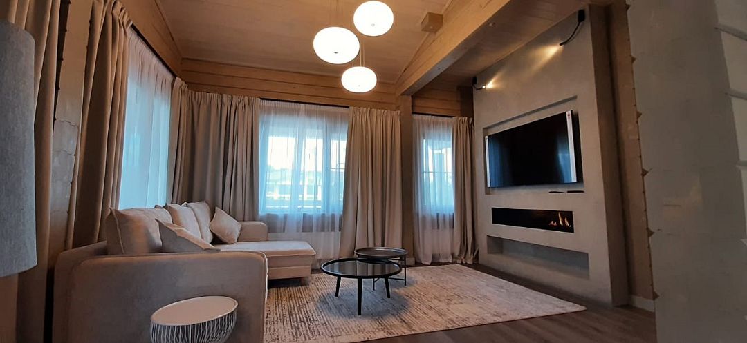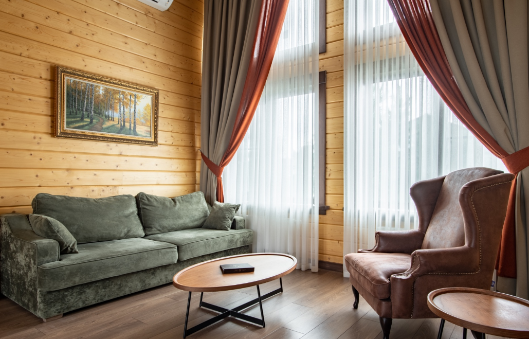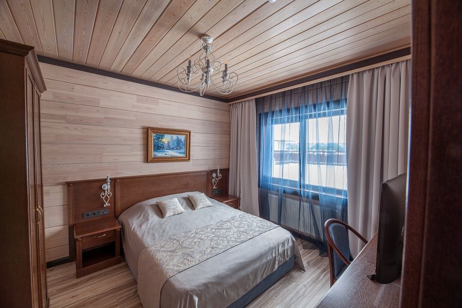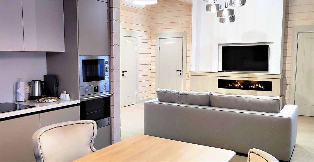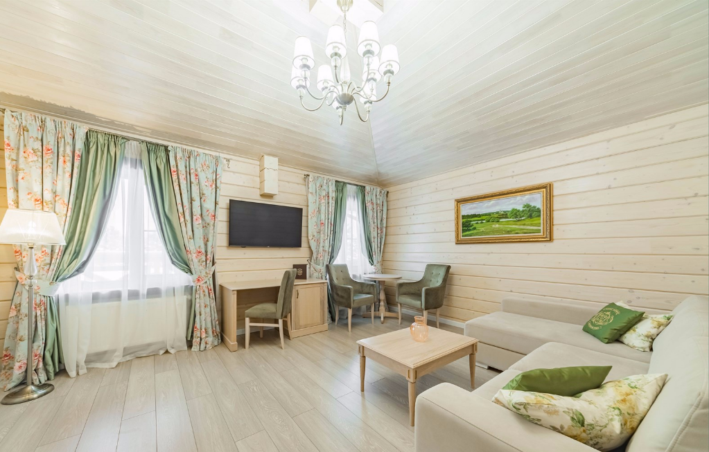 март 2022 г.Остались очень довольны выходнымиПервый опыт отдыха в Подмосковье превзошел все наши ожидания, в хорошем смысле. Сняли Шале Luxe на выходные, это половина домика - у вас свой подьезд и место для машины, отдельных вход в дом. Небольшая веранда, но у нас погода была холодная и соседей не было, а так может и смотрели бы друг на друга сидя там с соседями) В доме Очень чисто, вот это один из самых главных моментов! Обстановка не зашарпаная, все новенькое, намытое и натертое до блеска, очень приятно находиться в доме. Второй важный момент это матрас на кровати -он хороший, спали как убитые и спина не болела. Третье - это вкусная еда, мы заказывали из их ресторана - привозят быстро, все горячее и вкусное, особенно нам полюбились блинчики с творогом) поскольку был не сезон, людей почти не было и стояла тишина. То, что нам и было нужно) В сезон большая территория для детских игр - площадки, мини зоопарк и т.д. Небольшой недостаток, рядом нет магазина никакого, так что снеки и шоколадки лучше прихватить с собой.