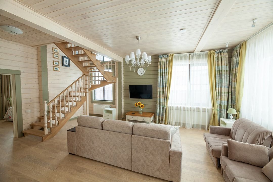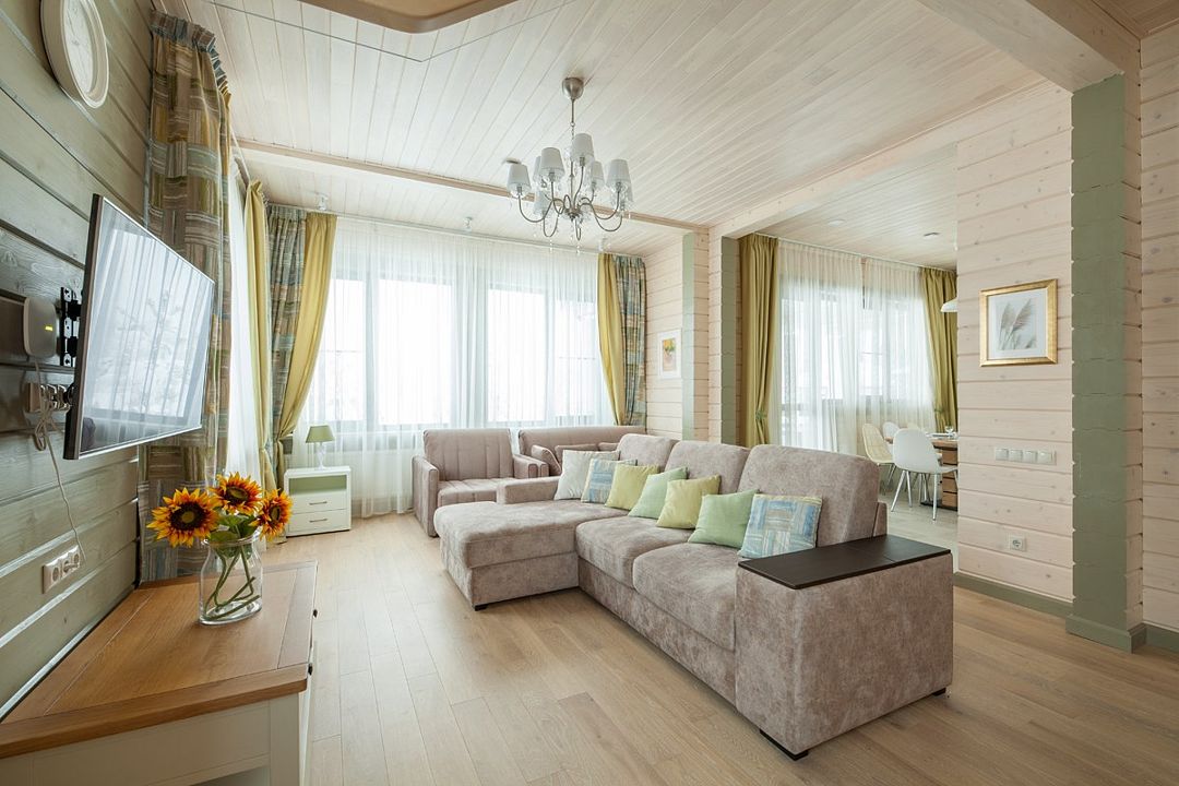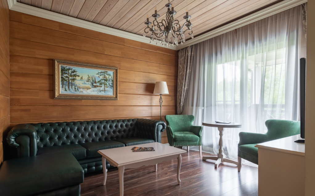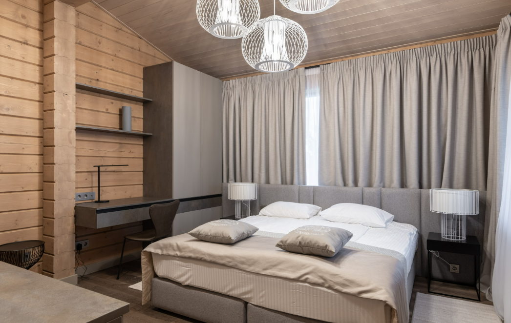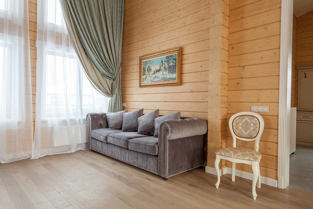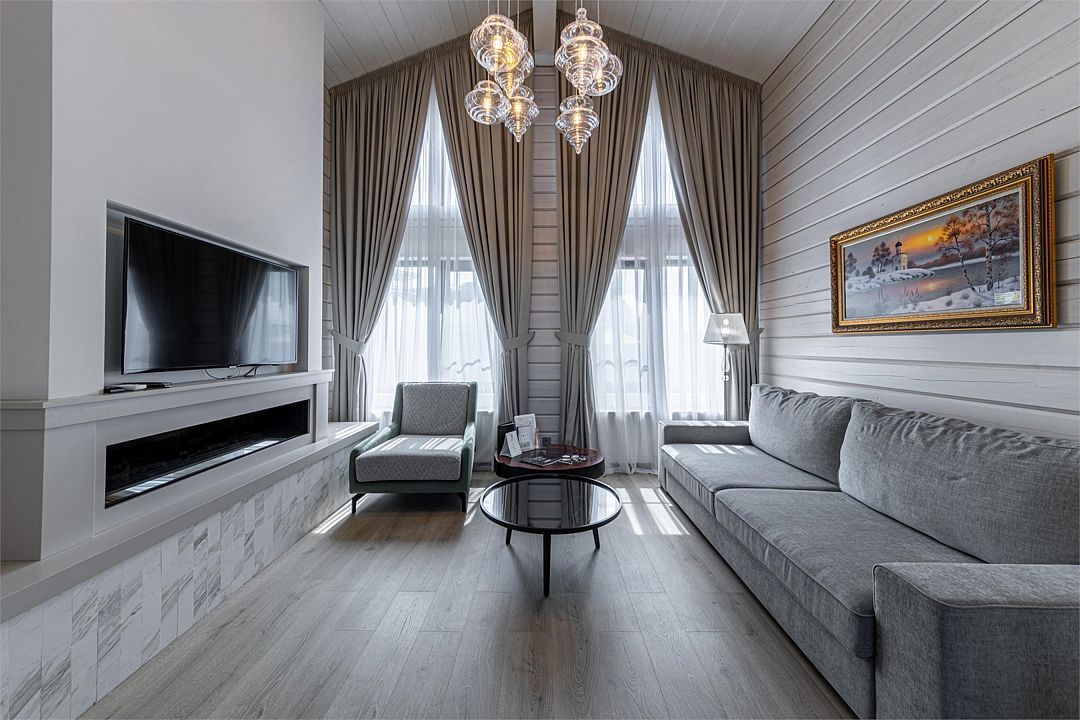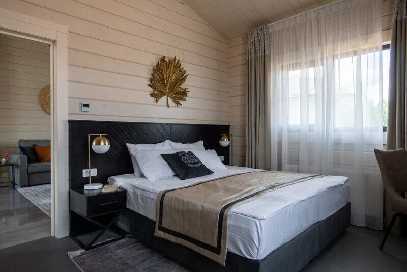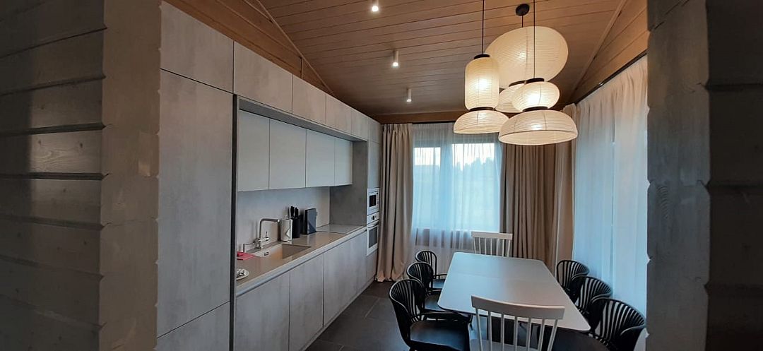 март 2022 г.Остались очень довольны выходнымиПервый опыт отдыха в Подмосковье превзошел все наши ожидания, в хорошем смысле. Сняли Шале Luxe на выходные, это половина домика - у вас свой подьезд и место для машины, отдельных вход в дом. Небольшая веранда, но у нас погода была холодная и соседей не было, а так может и смотрели бы друг на друга сидя там с соседями) В доме Очень чисто, вот это один из самых главных моментов! Обстановка не зашарпаная, все новенькое, намытое и натертое до блеска, очень приятно находиться в доме. Второй важный момент это матрас на кровати -он хороший, спали как убитые и спина не болела. Третье - это вкусная еда, мы заказывали из их ресторана - привозят быстро, все горячее и вкусное, особенно нам полюбились блинчики с творогом) поскольку был не сезон, людей почти не было и стояла тишина. То, что нам и было нужно) В сезон большая территория для детских игр - площадки, мини зоопарк и т.д. Небольшой недостаток, рядом нет магазина никакого, так что снеки и шоколадки лучше прихватить с собой.