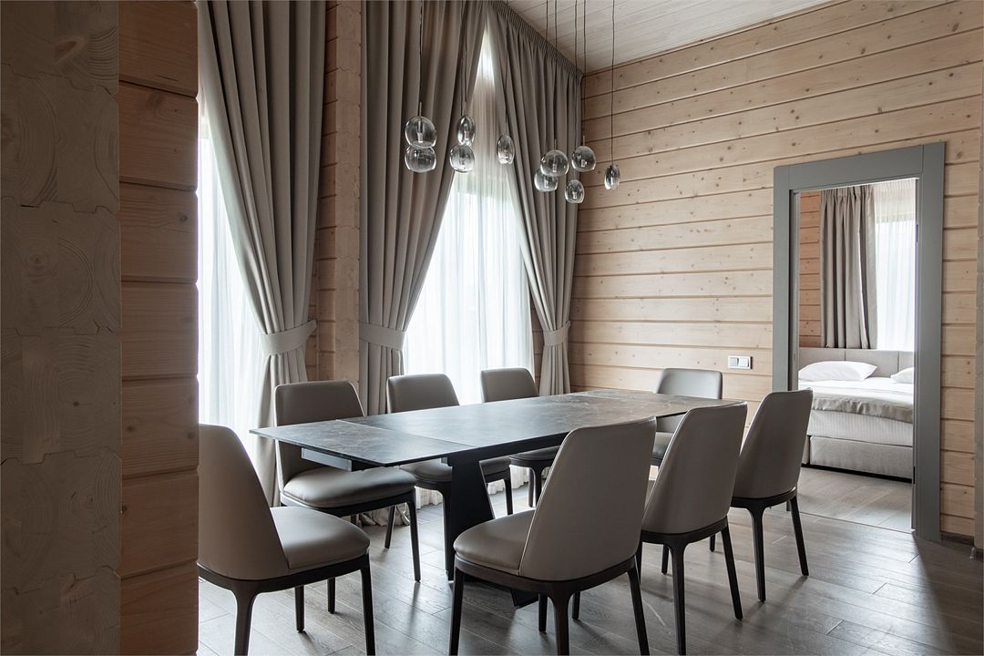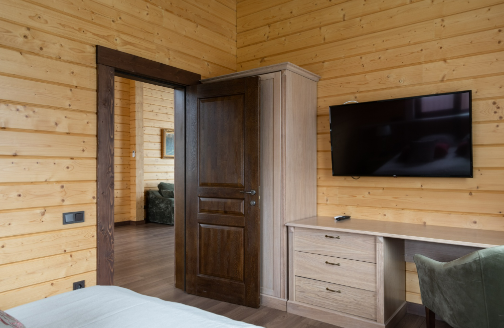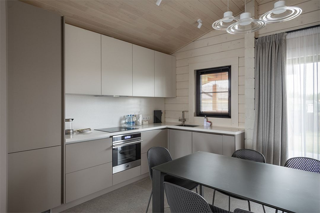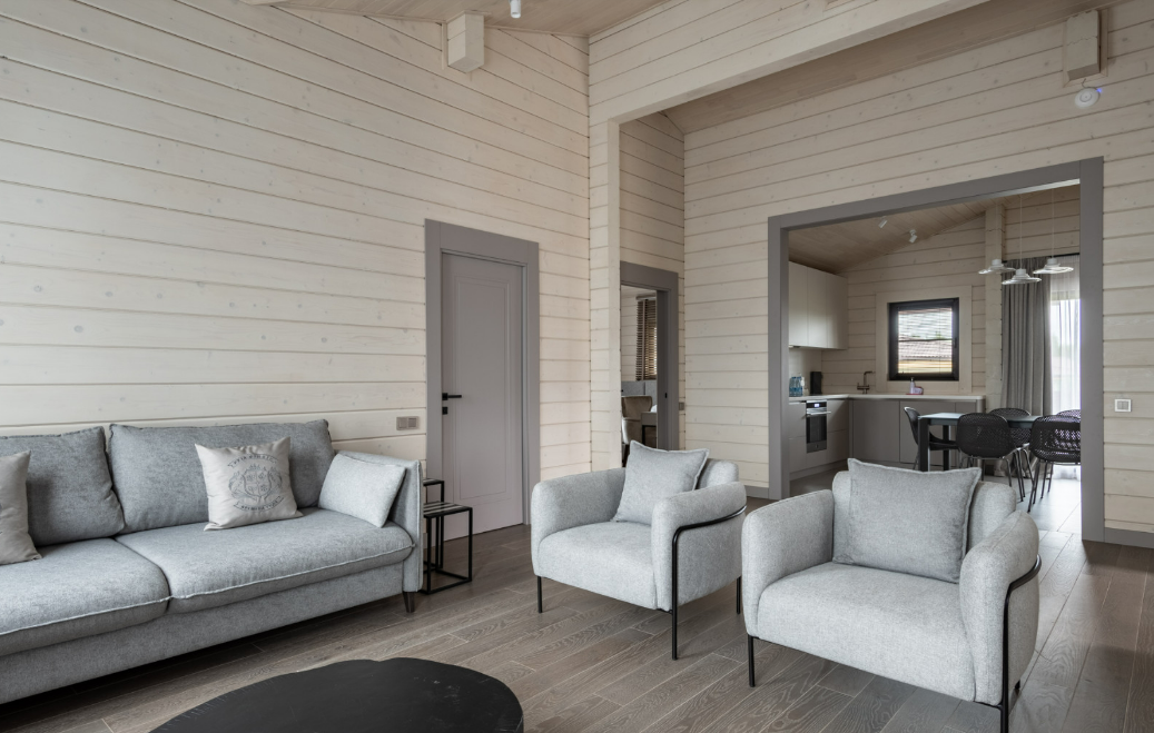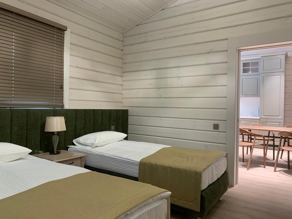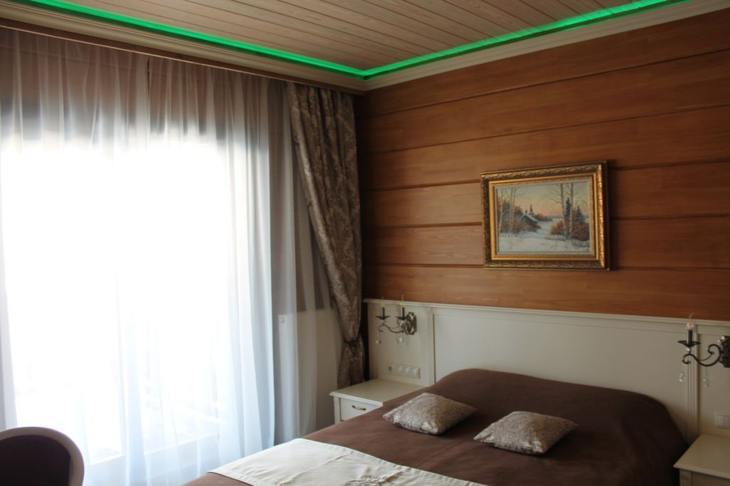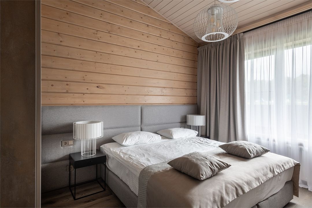 март 2022 г.Остались очень довольны выходнымиПервый опыт отдыха в Подмосковье превзошел все наши ожидания, в хорошем смысле. Сняли Шале Luxe на выходные, это половина домика - у вас свой подьезд и место для машины, отдельных вход в дом. Небольшая веранда, но у нас погода была холодная и соседей не было, а так может и смотрели бы друг на друга сидя там с соседями) В доме Очень чисто, вот это один из самых главных моментов! Обстановка не зашарпаная, все новенькое, намытое и натертое до блеска, очень приятно находиться в доме. Второй важный момент это матрас на кровати -он хороший, спали как убитые и спина не болела. Третье - это вкусная еда, мы заказывали из их ресторана - привозят быстро, все горячее и вкусное, особенно нам полюбились блинчики с творогом) поскольку был не сезон, людей почти не было и стояла тишина. То, что нам и было нужно) В сезон большая территория для детских игр - площадки, мини зоопарк и т.д. Небольшой недостаток, рядом нет магазина никакого, так что снеки и шоколадки лучше прихватить с собой.