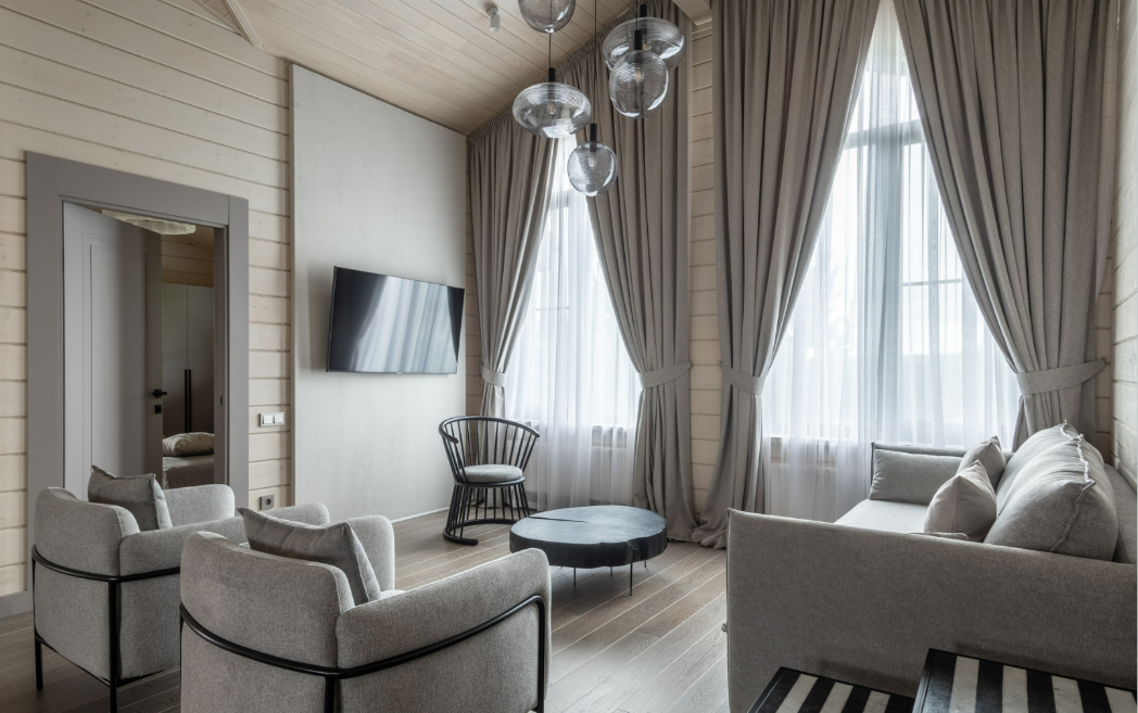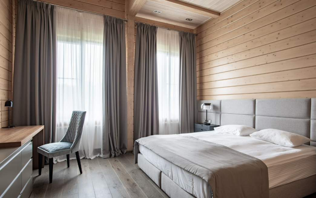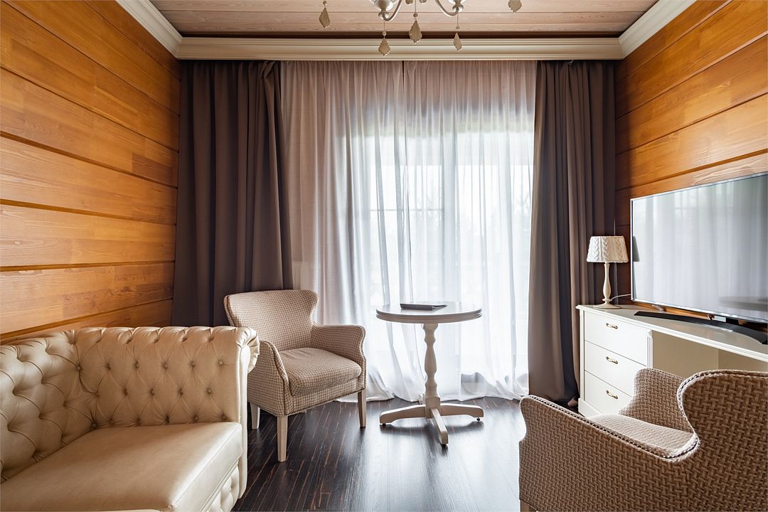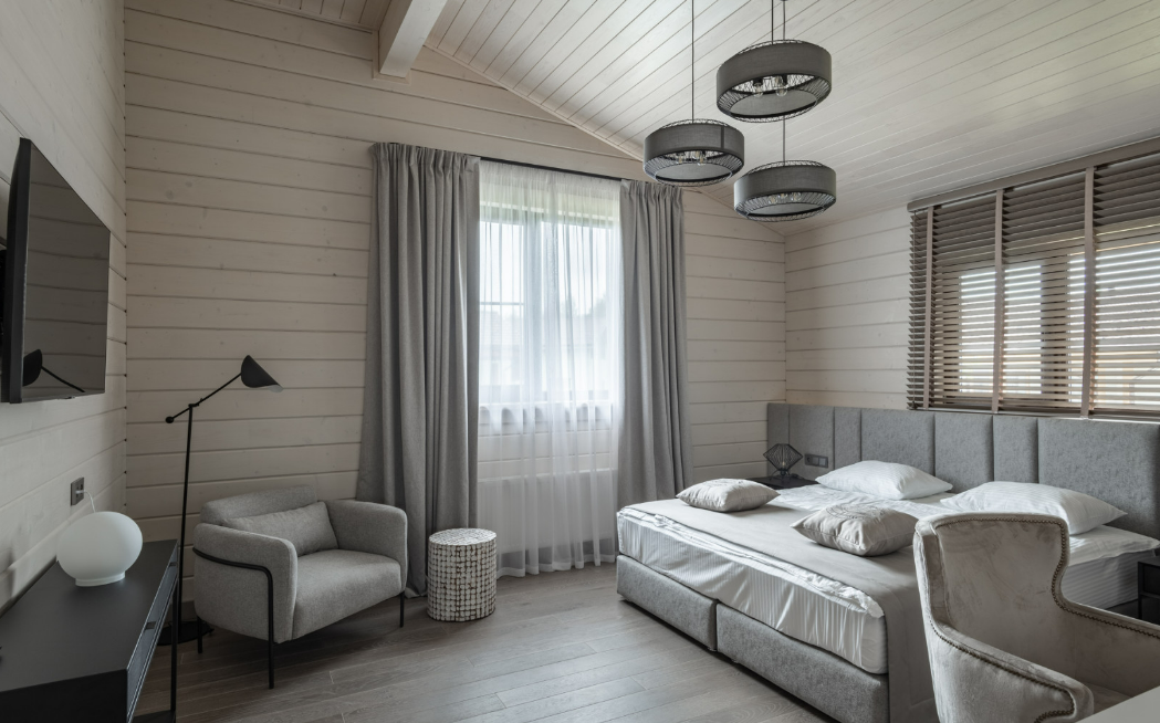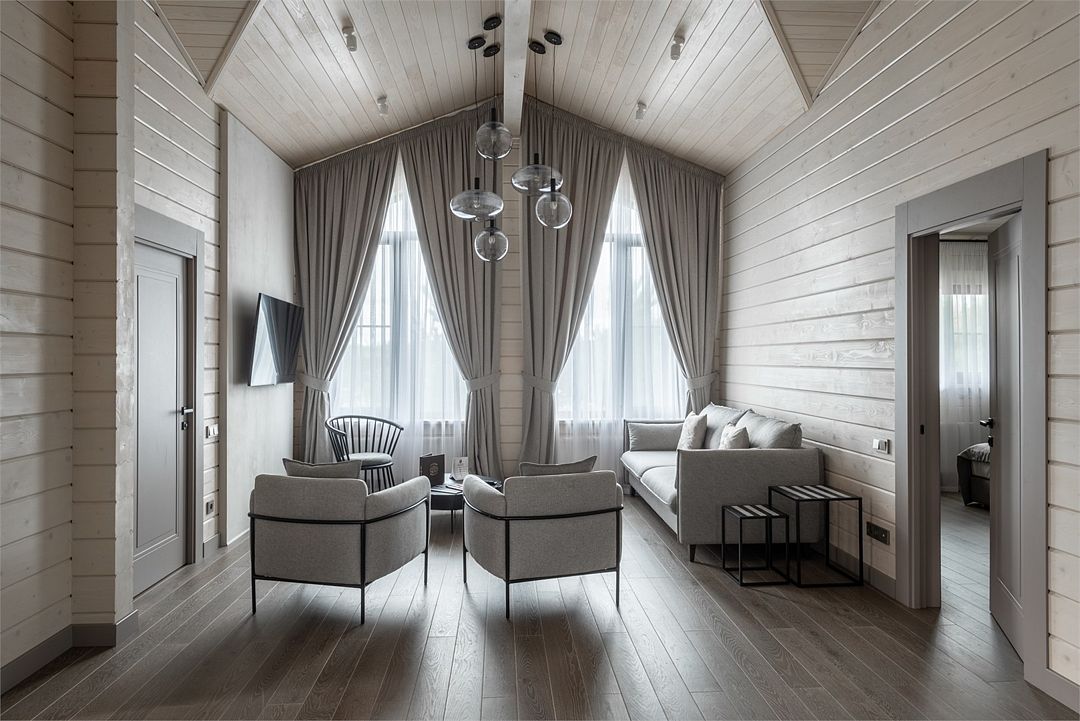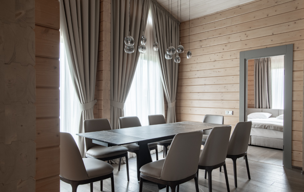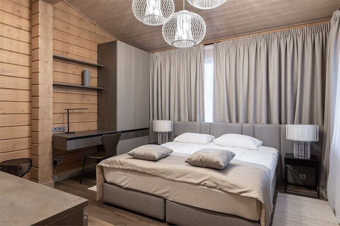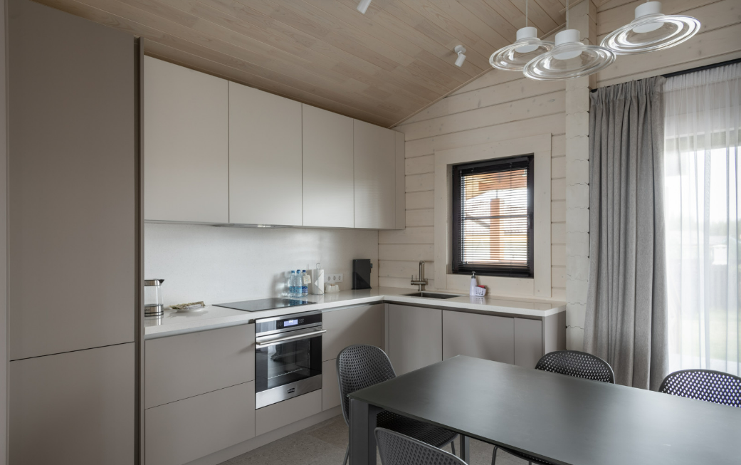 март 2022 г.Остались очень довольны выходнымиПервый опыт отдыха в Подмосковье превзошел все наши ожидания, в хорошем смысле. Сняли Шале Luxe на выходные, это половина домика - у вас свой подьезд и место для машины, отдельных вход в дом. Небольшая веранда, но у нас погода была холодная и соседей не было, а так может и смотрели бы друг на друга сидя там с соседями) В доме Очень чисто, вот это один из самых главных моментов! Обстановка не зашарпаная, все новенькое, намытое и натертое до блеска, очень приятно находиться в доме. Второй важный момент это матрас на кровати -он хороший, спали как убитые и спина не болела. Третье - это вкусная еда, мы заказывали из их ресторана - привозят быстро, все горячее и вкусное, особенно нам полюбились блинчики с творогом) поскольку был не сезон, людей почти не было и стояла тишина. То, что нам и было нужно) В сезон большая территория для детских игр - площадки, мини зоопарк и т.д. Небольшой недостаток, рядом нет магазина никакого, так что снеки и шоколадки лучше прихватить с собой.