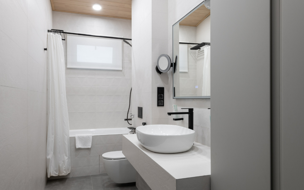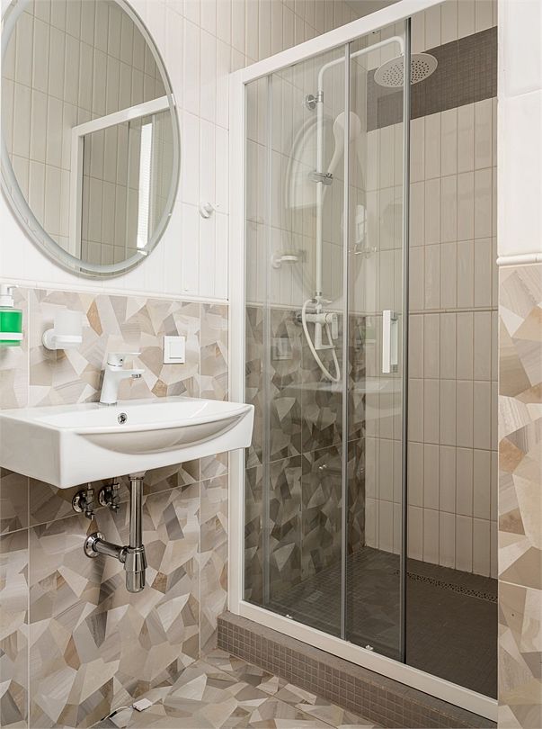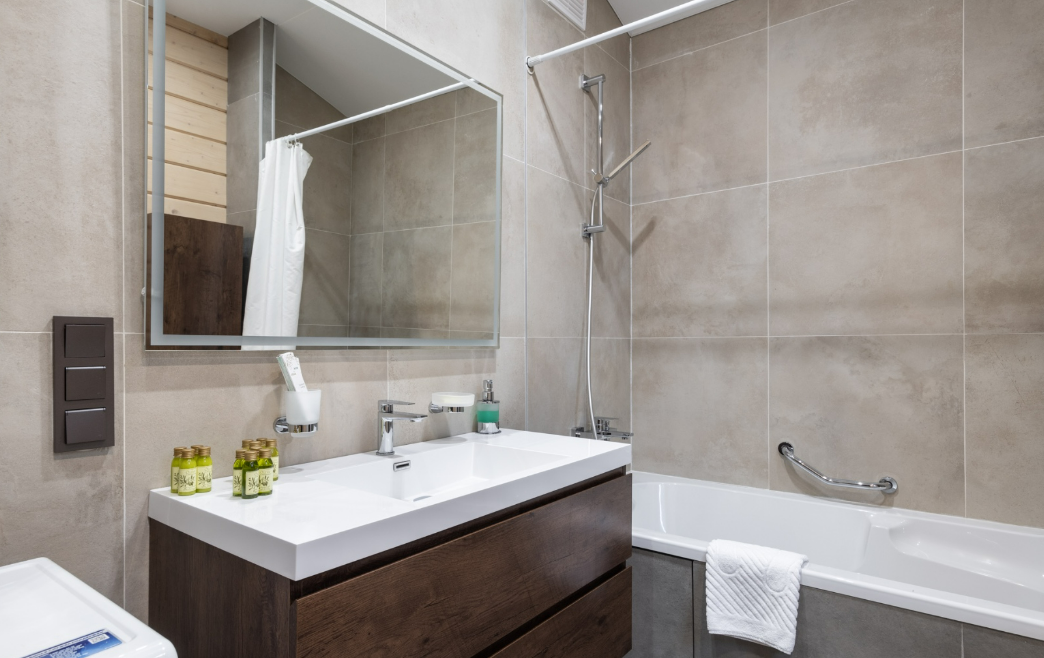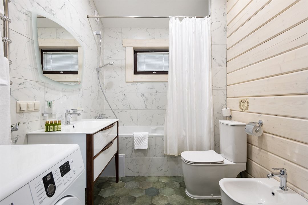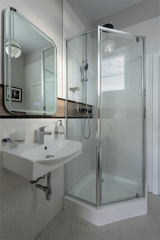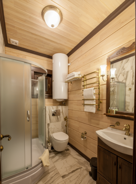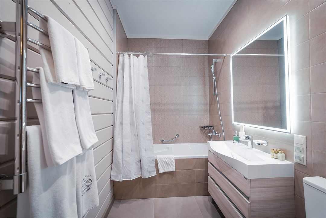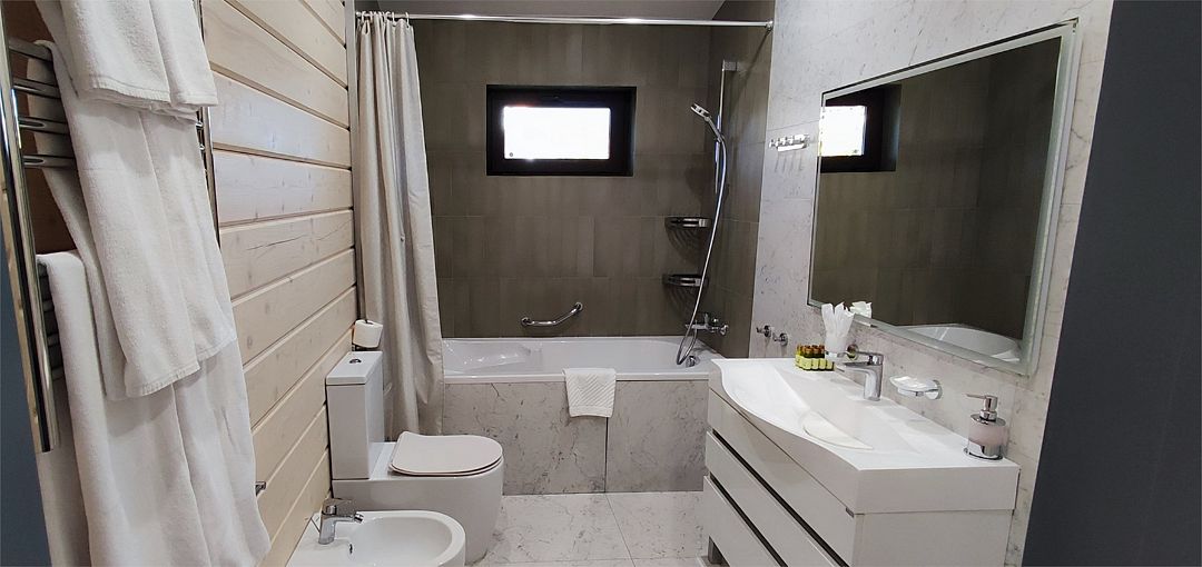 - два санузла с душевой кабиной (при наличии по запросу — номера с санузлом с полноценной ванной);
