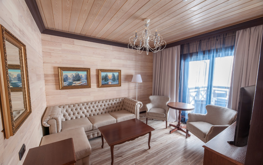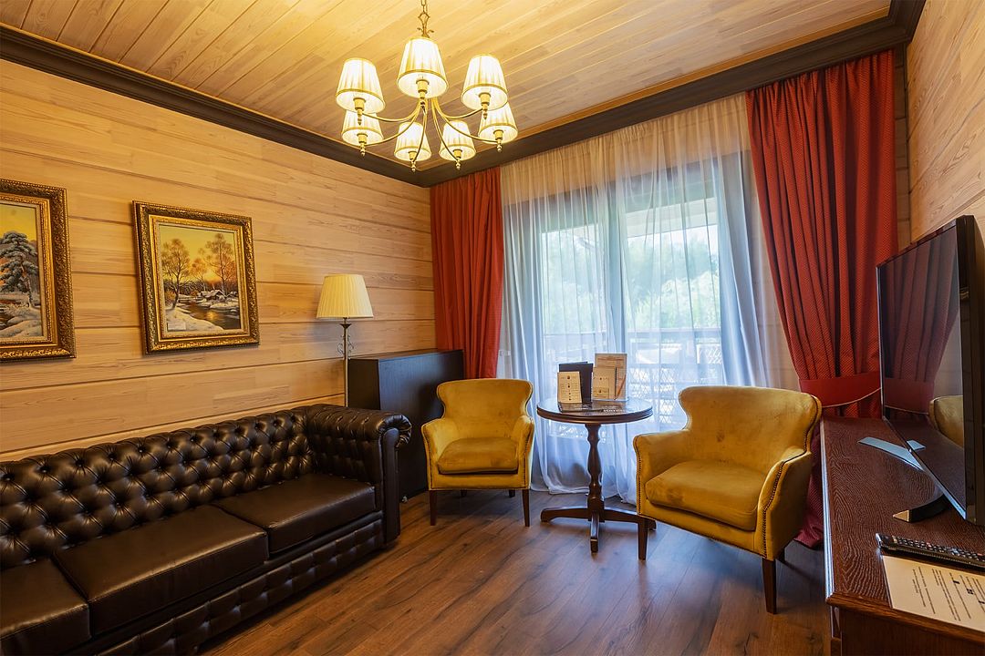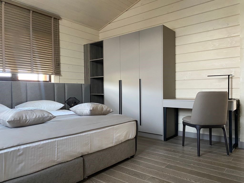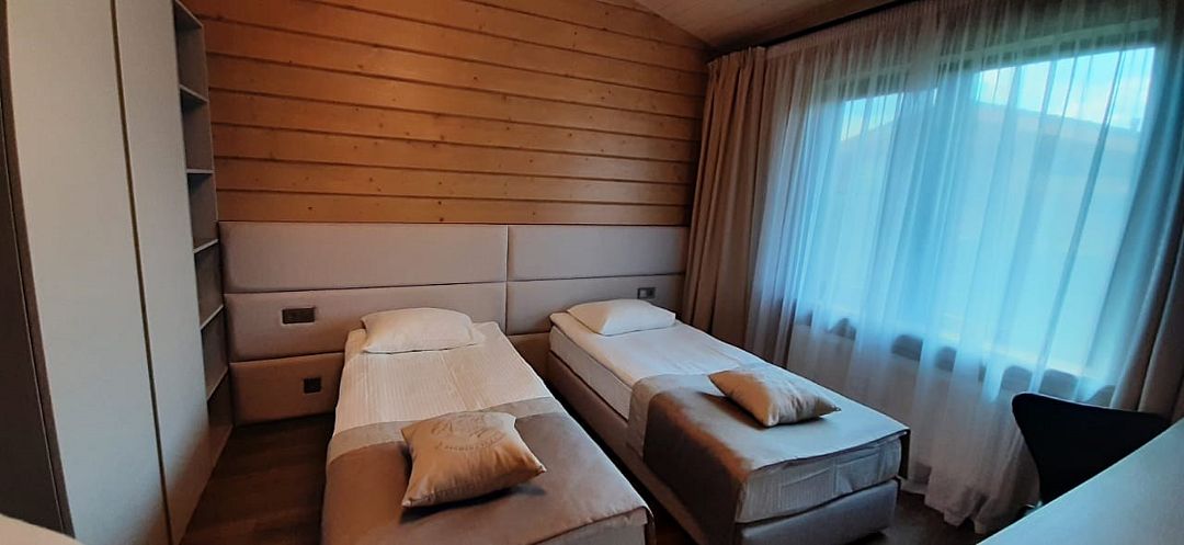 Шале 80 кв.м (дуплекс) - двухкомнатный номер с кондиционером: гостиная и 1 спальня и отдельным входом с улицы. Шале рассчитано для комфортного размещения 2-х человек. Дополнительные гости могут разместиться на раскладном диване в гостиной, имеется возможность установки дополнительного места (просим обратить внимание на стоимость при размещении гостей на диване и дополнительных местах).
