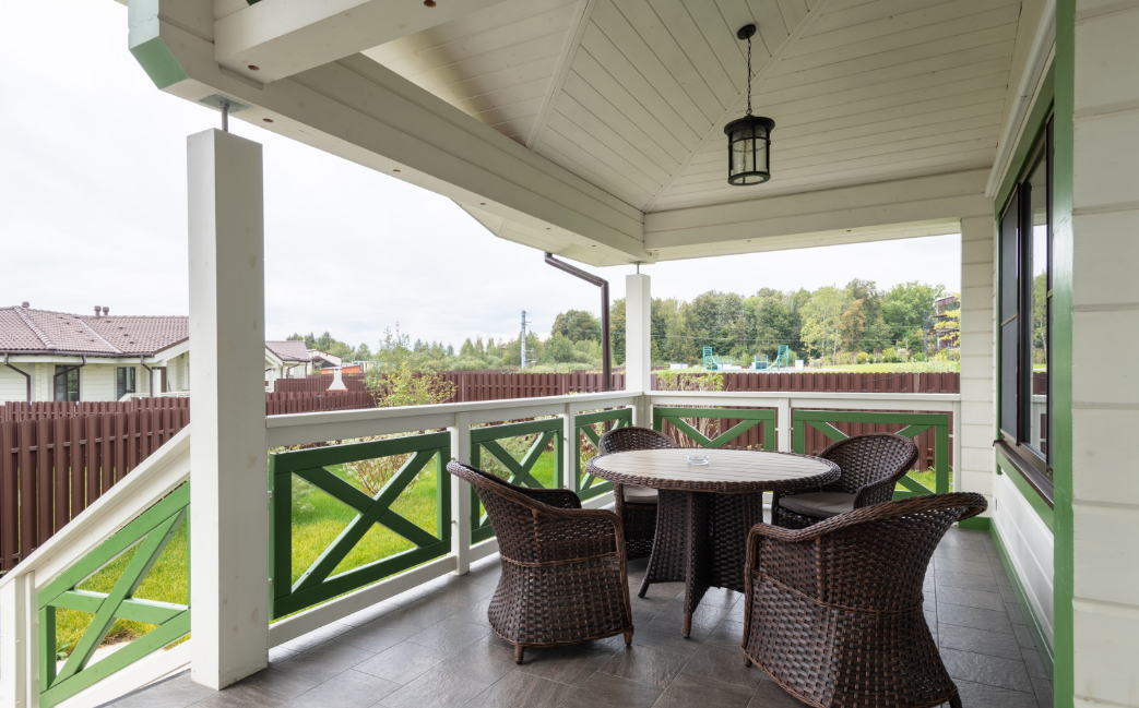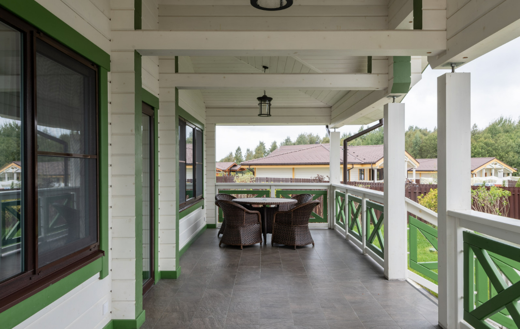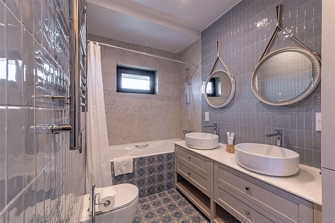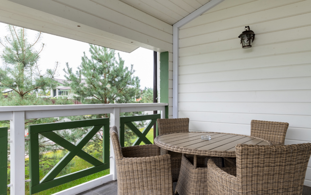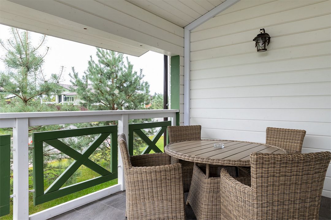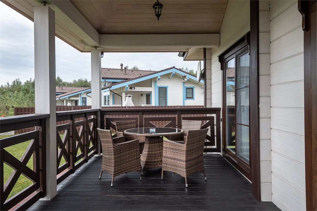 2 спальни с кроватями Queen size, кухня, гостиная, прихожая, холл, санузел с душевой кабиной, туалетная комната, просторная терраса с садовой мебелью.