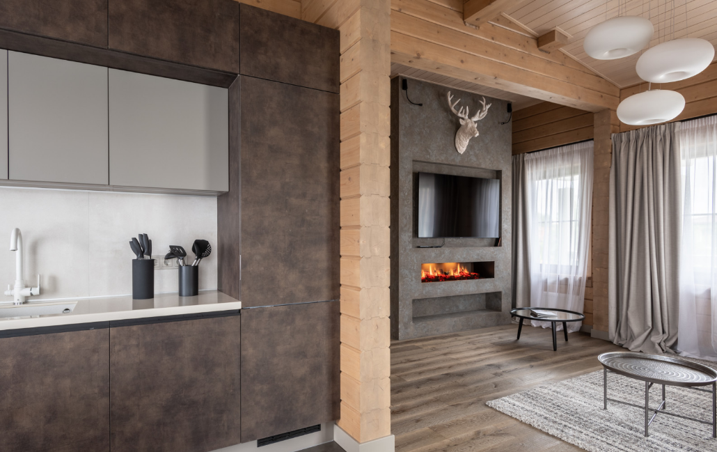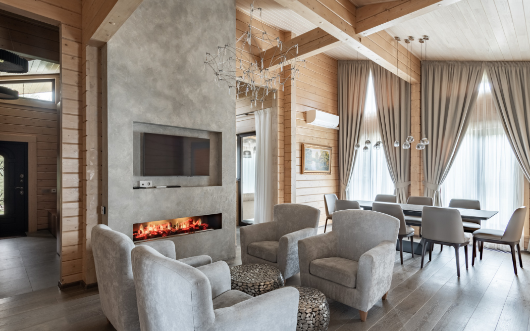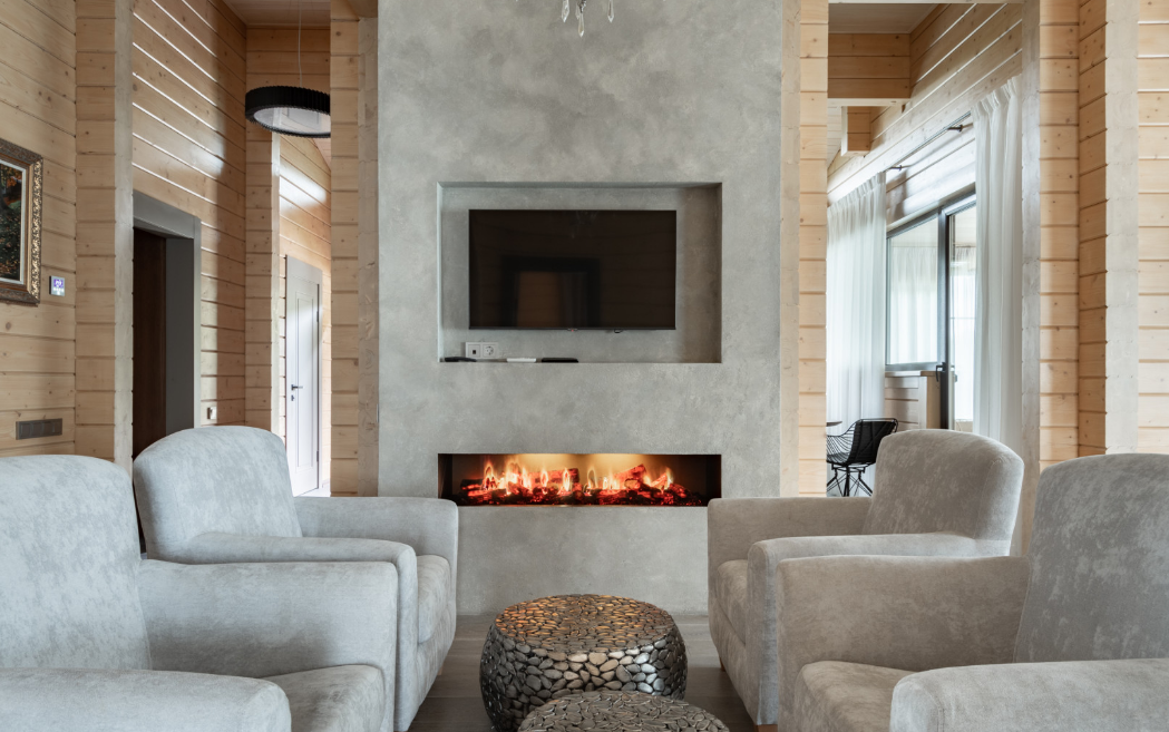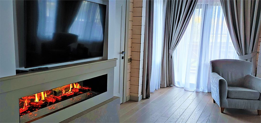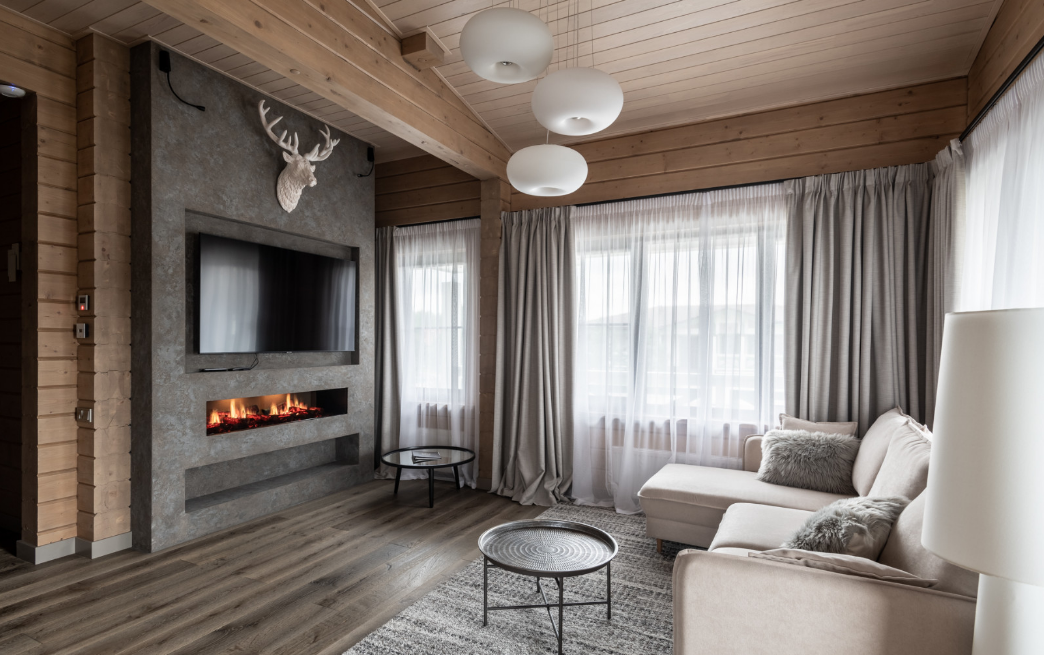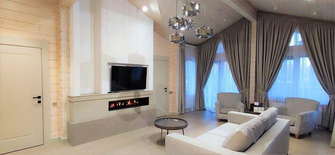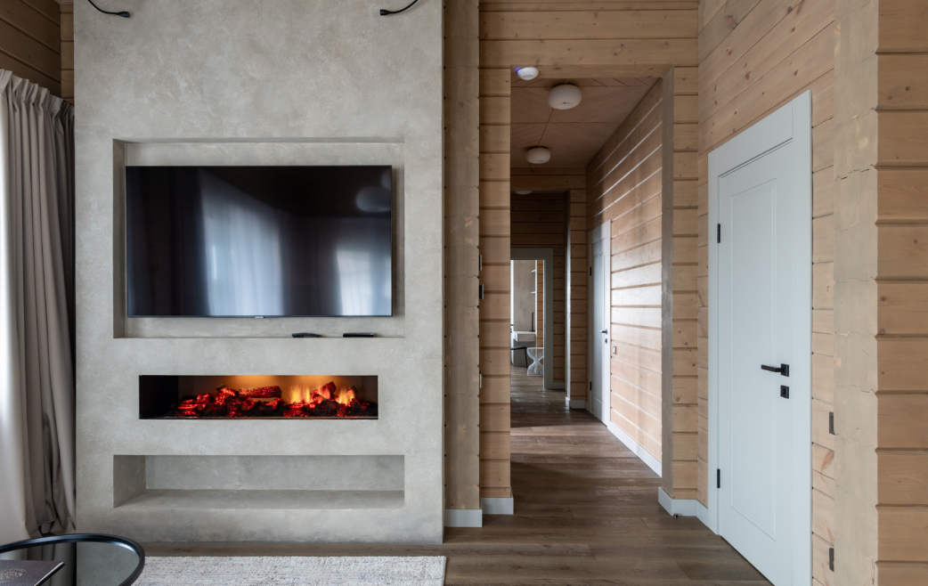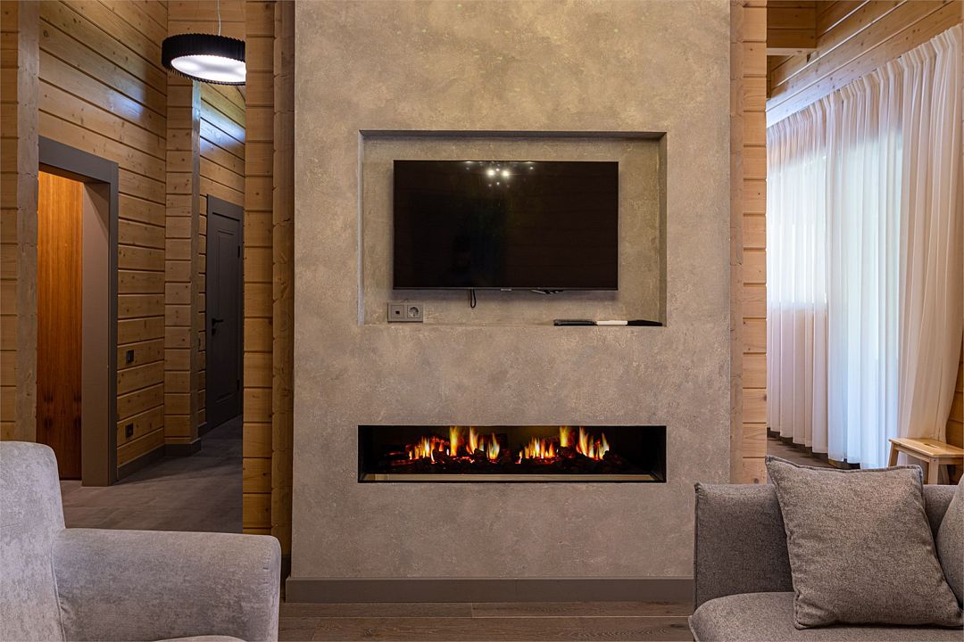 Электрический дизайнерский камин в нескольких коттеджах. Информацию можно уточнить.