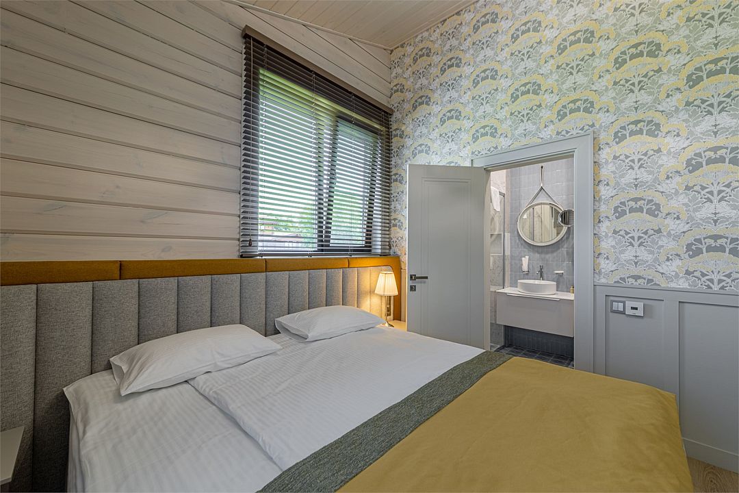 Однокомнатный номер 40 кв.м с отдельным входом с улицы (в коттедже 4 номера). Идеален для размещения двух гостей. Дополнительный гость (ребенок до 12 лет) может разместиться на еврораскладушке (просим обратить внимание на стоимость при размещении на дополнительном месте). В номере одна двуспальная кровать (или две односпальные кровати).