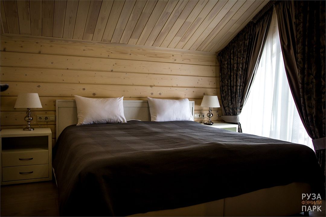 Эко-отель «Ruza Family Park» – это комплекс, расположенный в экологически чистом районе Подмосковья, всего в 65 км от МКАД по Новорижскому шоссе. На обособленной территории, окруженной хвойным лесом, гостей ждут комфортабельные коттеджи и шале из клееного бруса, оборудованные всем необходимым: ванной комнатой, кухней с техникой, удобной мебелью и террасой. На территории также предусмотрена барбекю-зона.