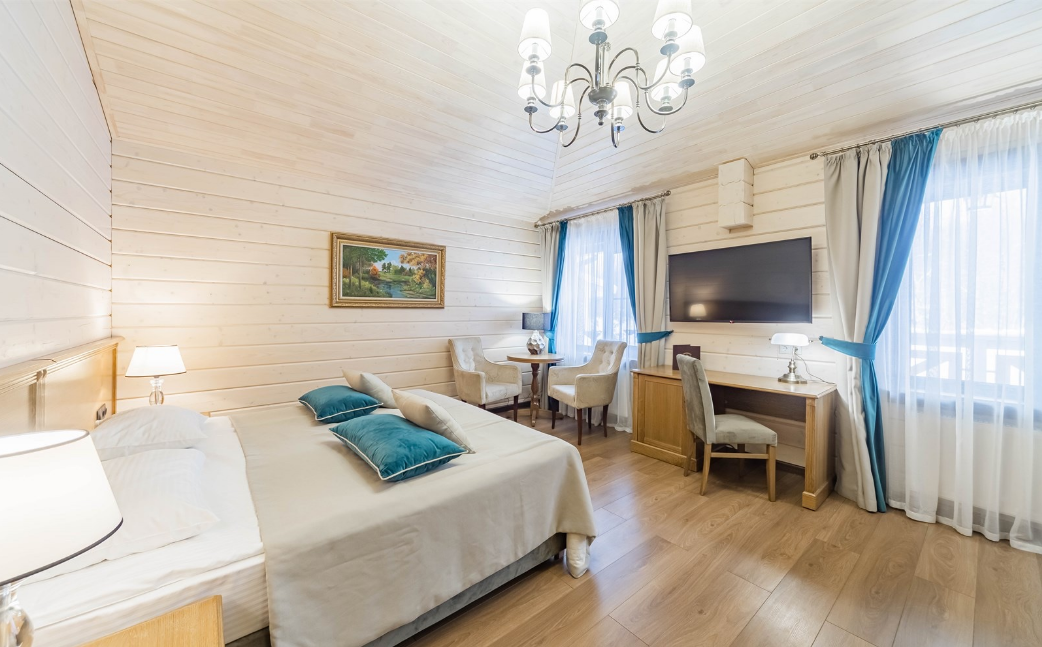 Предусмотрена возможность бронирования номеров данной категории в одном коттедже (при наличии по запросу).