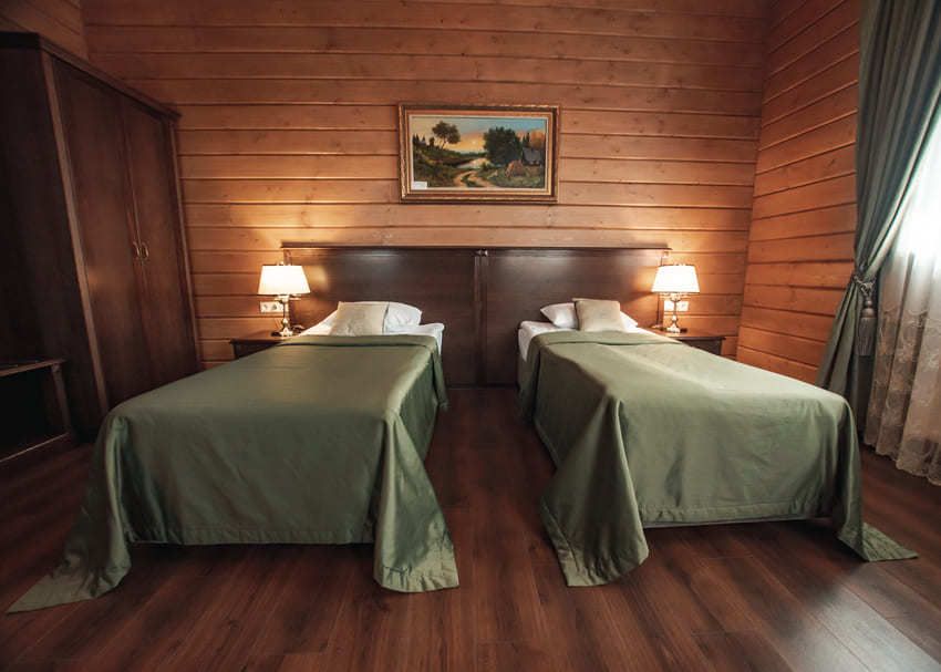 - в номере 1 двуспальная или 2 односпальные кровати;