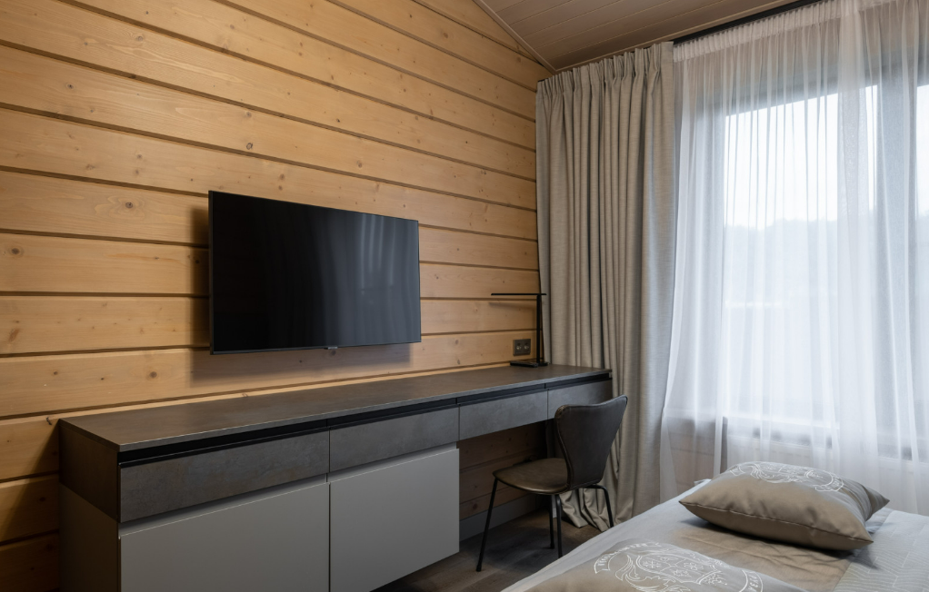 Коттедж рассчитан для комфортного размещения 4-х человек с возможностью установки дополнительного места (еврораскладушка).