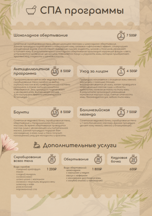 - Программа «Будь здоров» (до 5 гостей; пихта, липа, береза, дуб, эвкалипт, мелиса, мята, душица, грейпфрут).
