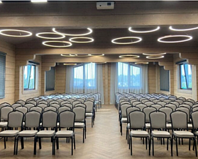 К услугам гостей — сцена, оборудование для презентаций и организация питания.