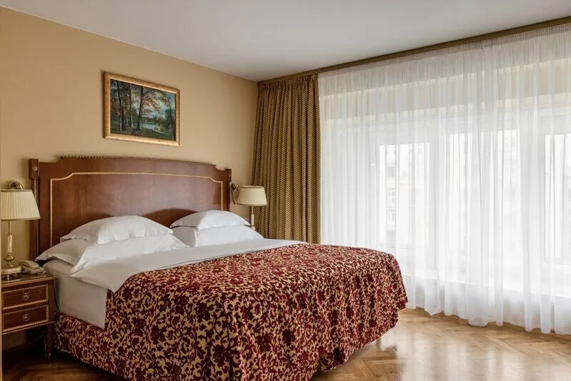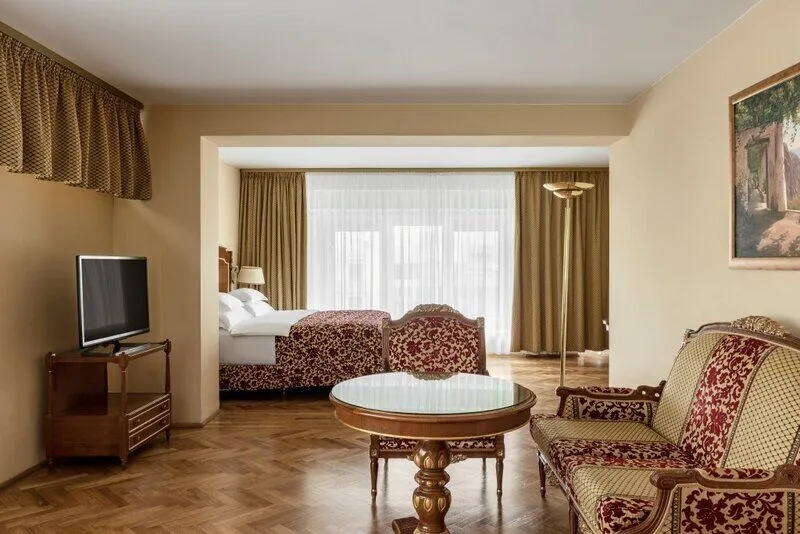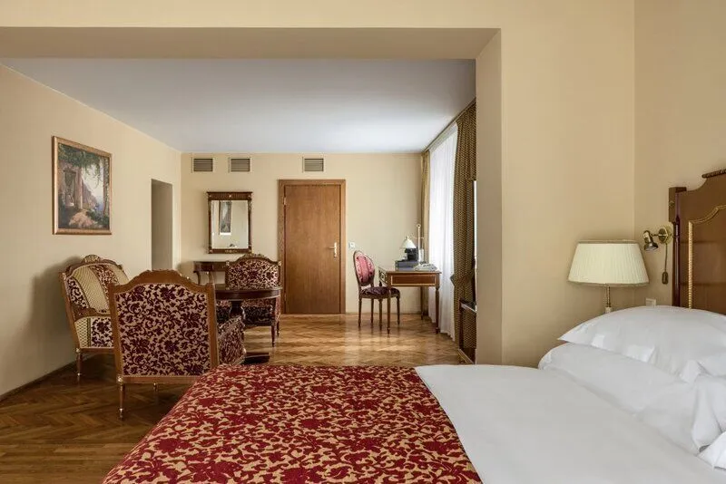 Путешествие с паройПрезидентский люксНациональ- очень странное отношение к гостям! Нам продлили номер до 13.30, но после бассейна в 11.50 в номер мы не смогли попасть! Они заблокировали карту! Такое мы видим первый раз! То есть нам заблокировали карточки от номера! В президентском люксе мы обнаружили грязные ковры и самую дешёвую косметику в ванной! На завтраках красную икру прячут, это очень смешно! Надо просить и вам из специального шкафчика её достанут уже подсохшую! Бедные туристы, которых обманывают! Окна в номере нельзя открыть полностью или выйти на балкон, что тоже очень странно! Воды три бутылочки за цену сумасшедшую в сутки! И никаких больше бонусов! В номере звонил телефон (буквально один звонок) пару раз и даже глубокой ночью-ровно один раз и всё! Это тоже напрягает. Нам сказали «у вас в номере не работает телевизор, и музыка»- телевизор работал. Матрас очень жесткий, ванна старая и грязная (купаться расхотелось). Окна все грязные, а с таким видом и без возможности их открыть очень обидно. Микробассейн и микро джакузи это очень конечно смотрится печально, да еще с таким строгим надзорным, который не может поздороваться и быть поприветливее. Плюсы- приятные девушки встречают на завтраке, хорошие официантки! Стиль отеля мне очень нравится, но надо мерять ковры и сантехнику! Мягкие подушки. Если убрать выше описанные минусы, отель просто восхитительный! Со своей историей, с душой! Очень уютно и тепло в нём!