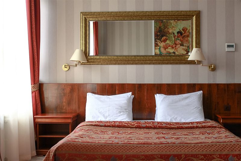 Комфортабельный однокомнатный двухместный номер (S от 17 до 20 кв. м) категории «Стандарт» с большой двуспальной кроватью/ 2 односпальных кровати.