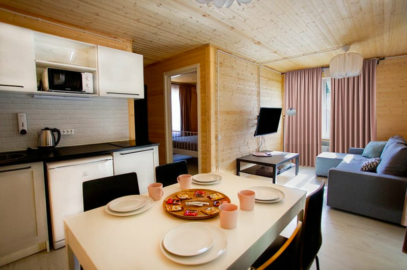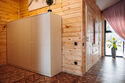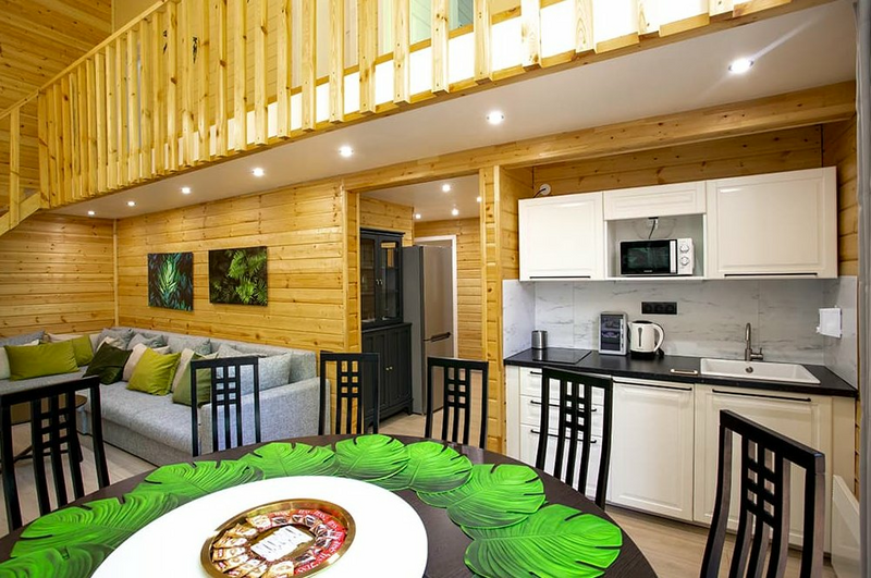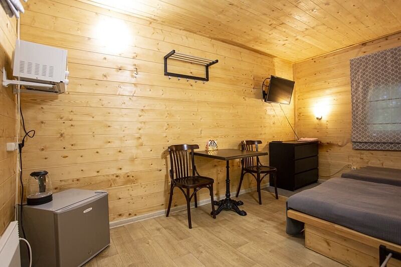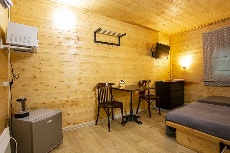 Инфраструктура: чан, зона отдыха, полотенца, душСауна готова принять компанию до 8 человек (6 основных мест, все дополнительные места оплачиваются отдельно). Мангал, банный чан, одноразовые наборы гигиенических принадлежностей для каждого гостя, холодильник, посуда, столовые приборы, душевая, стол и стулья, чайник и микроволновая печь.