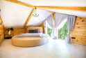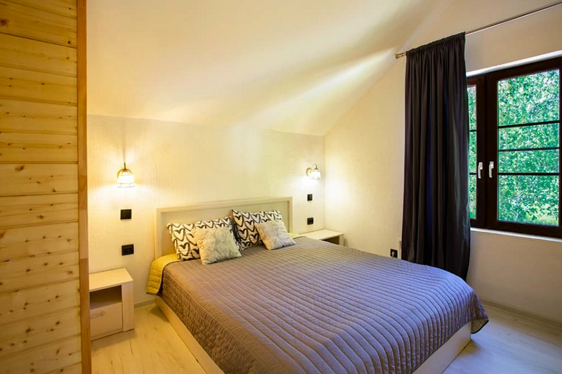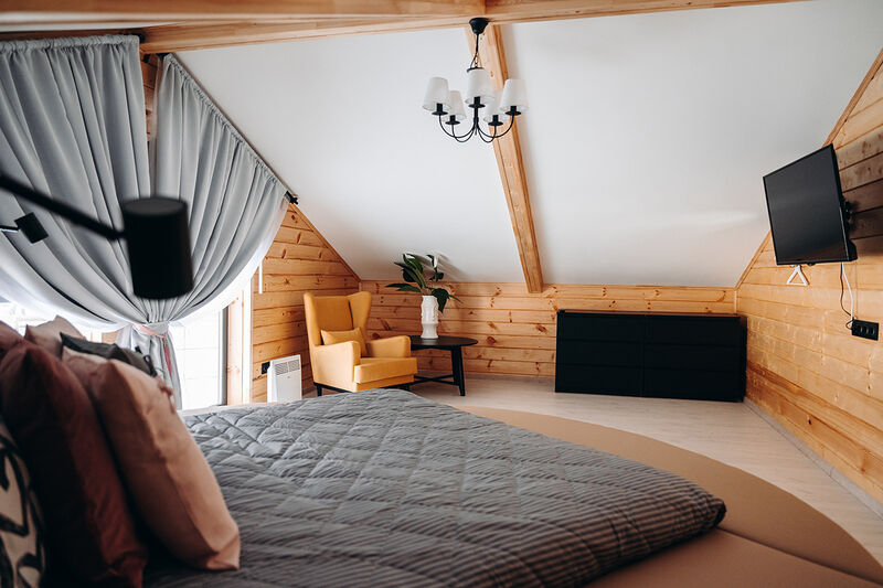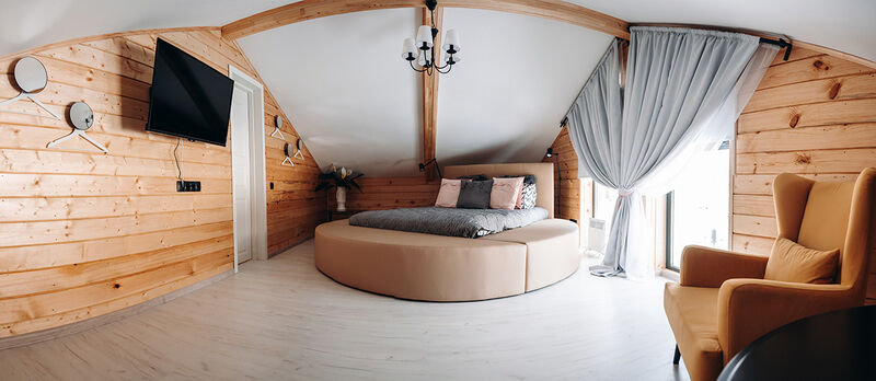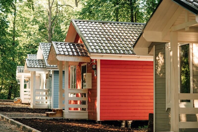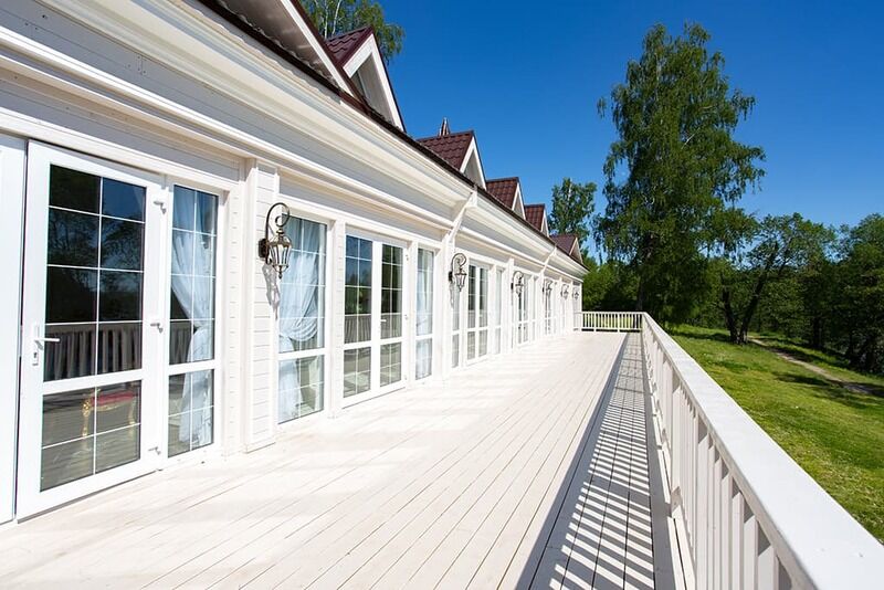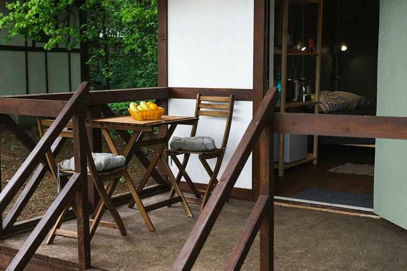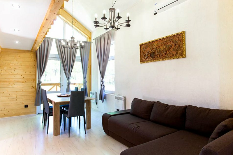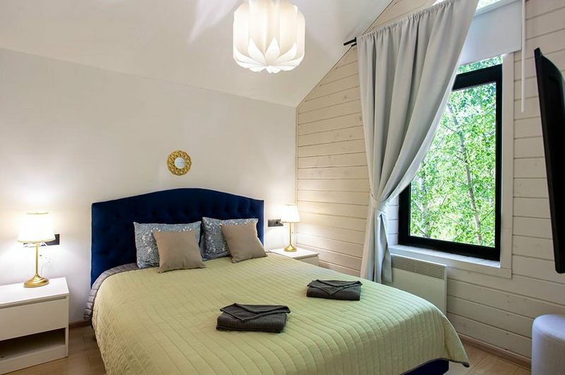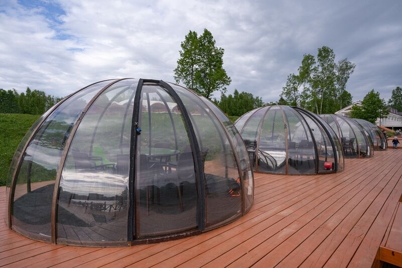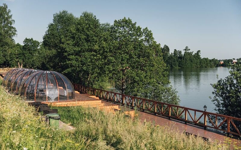 Комплекс занимает обширную территорию с барскими прудами, липовыми и пихтовыми аллеями, общей площадью 200 гектаров. Для размещения гостям предлагаются современные двухэтажные деревянные коттеджи. В некоторых домиках встречается оборудованная кухня, в других — есть вся необходимая бытовая техника — электрочайник, микроволновая печь, холодильник. В коттеджах улучшенных категорий есть собственная ванная комната, в бюджетных вариантах санузел и душевые находятся на территории. Кроме того, у каждого коттеджа есть собственная меблированная терраса.