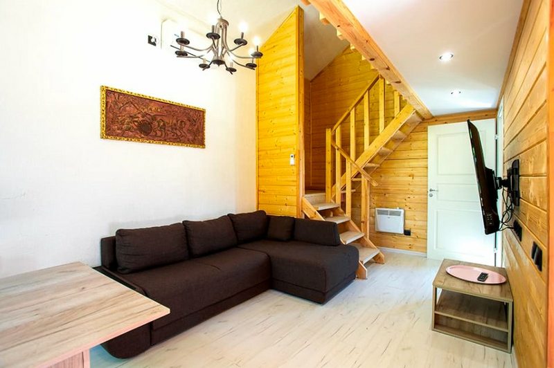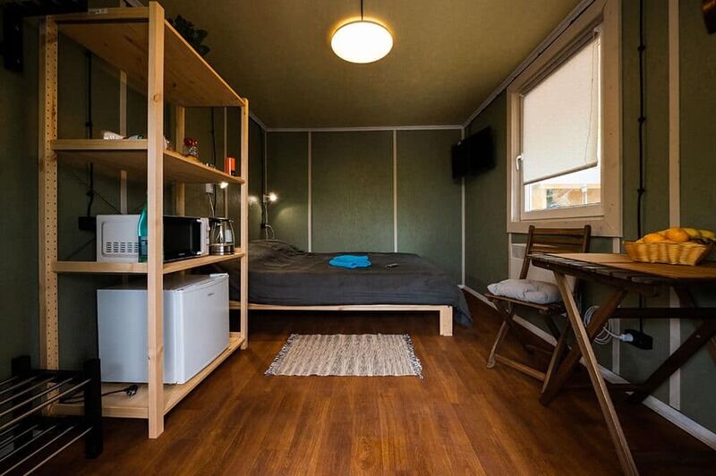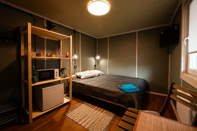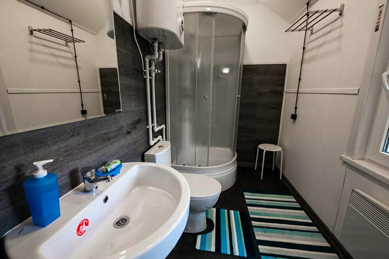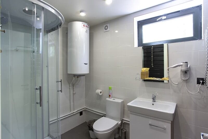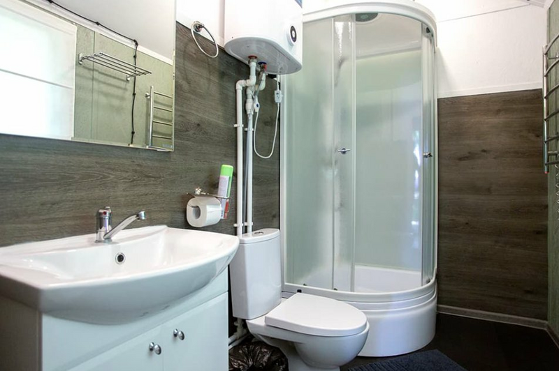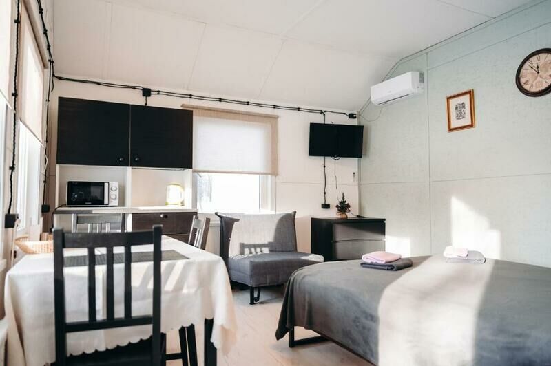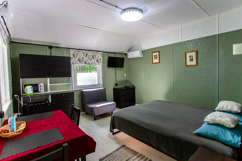 санузел на территории, микроволновая печь, холодильник, телевизор и чайник.11 м2.