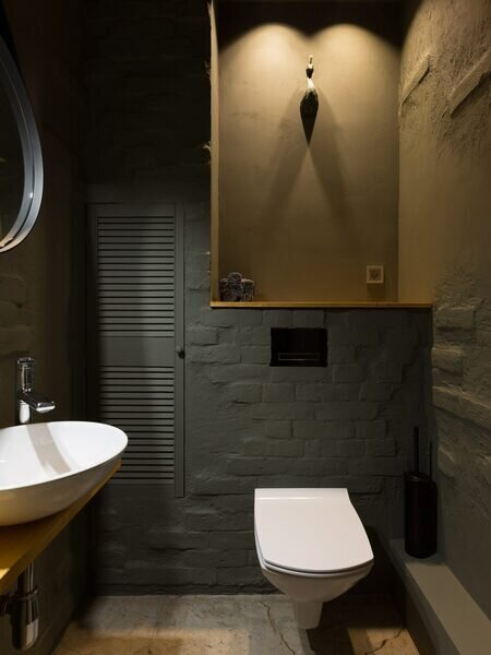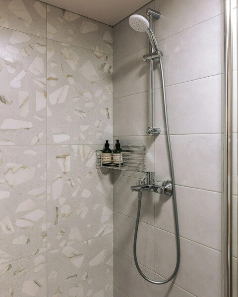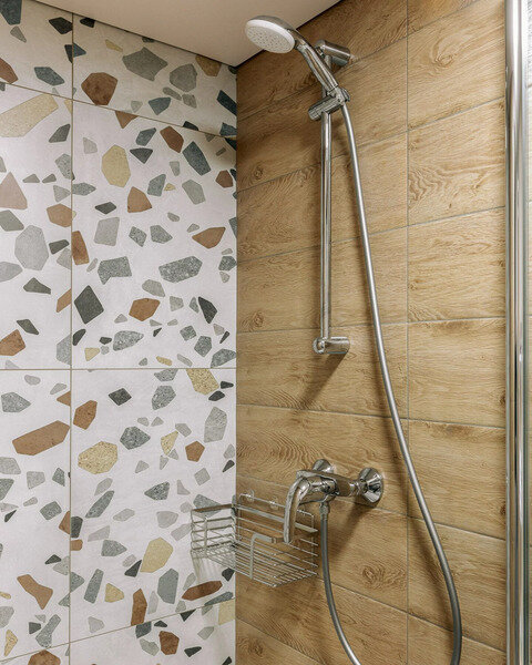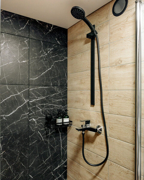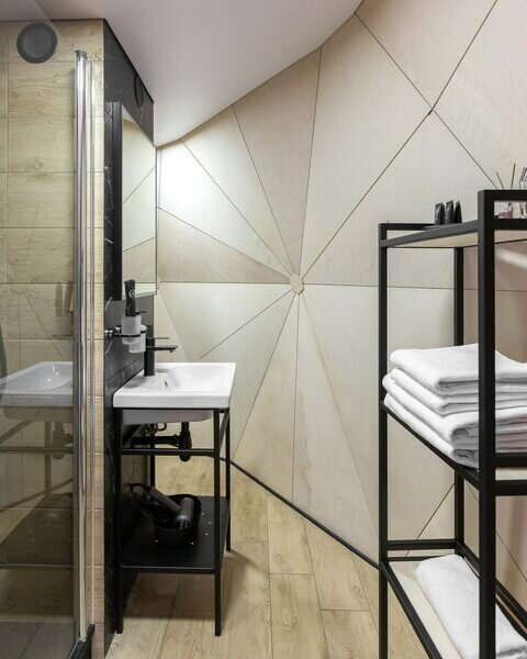 - Душ, зеркало с подсветкой, полотенцесушитель и тёплые полы с подогревом;
