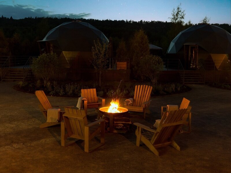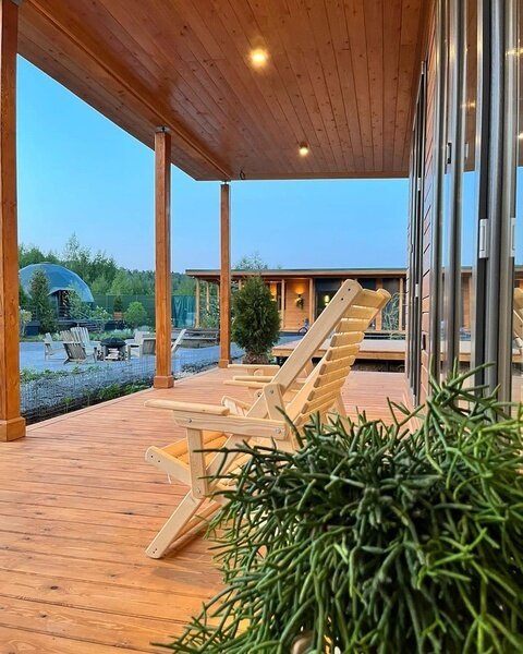 Отдыхая в глэмпинге, можно не только отдохнуть от городской суеты, но и расслабиться в SPA, воспользоваться чаном или просто посидеть у костра.