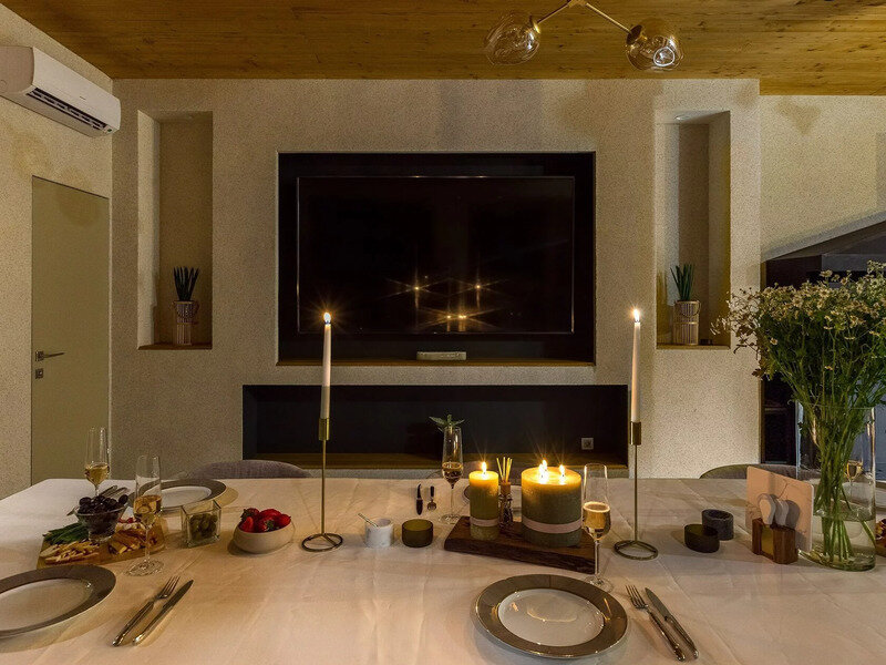 Сервис в гостиной: для красивой сервировки для вас приготовят столовую посуду из стекла и керамики.Можно разместиться с вашими питомцами в домиках Модерн и Вуд Вуд. Единоразовая оплата 4000 ₽.