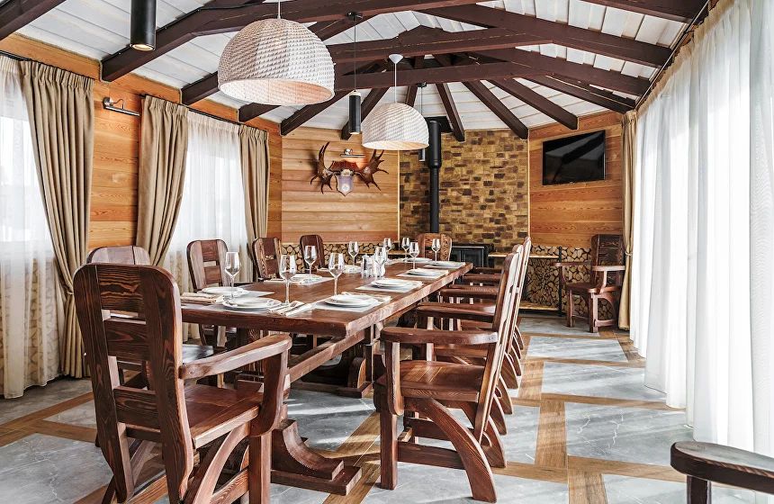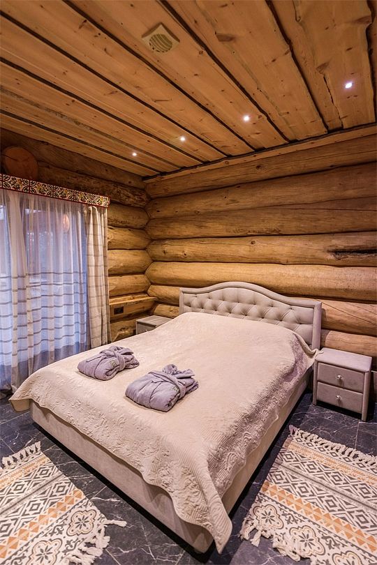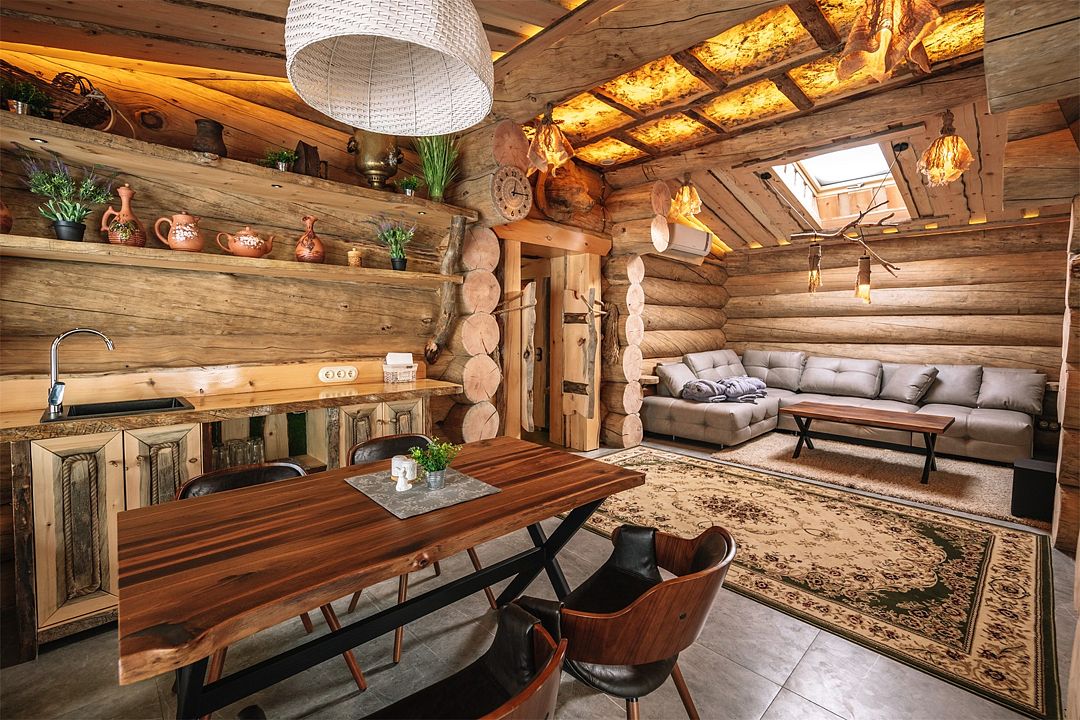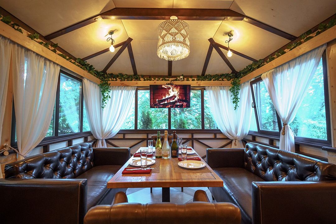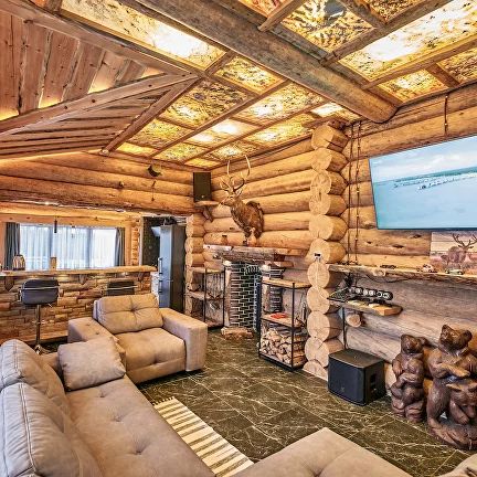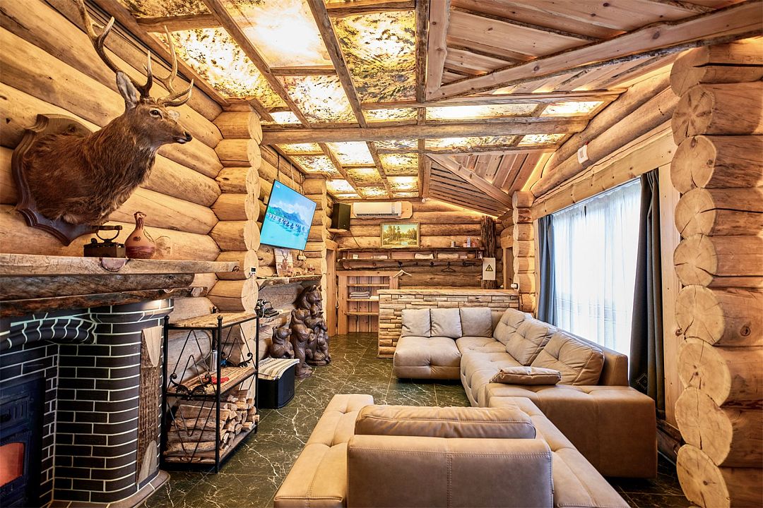В коттедже клуба есть просторная гостиная с камином, барной зоной, мягкой мебелью и множеством оригинальных деталей в интерьере. Кухня оборудована всей необходимой бытовой техникой, а в двух уютных спальнях с комфортом могут разместиться сразу несколько семей. В гостиной диван также раскладывается, трансформируясь в 2 полноценных спальных места.